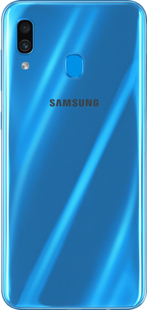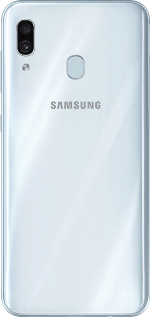 Auf den ersten Blick ähnelt das Galaxy A30 seinem großen Bruder deutlich. Das Display ist exakt gleich, allerdings wurde hier auf den In-Display-Fingerabdrucksensor verzichtet, der sich stattdessen auf der Rückseite des Smartphones befindet. Auch die Kameraausstattung wurde reduziert. Die Frontkamera bietet statt 25 Megapixel Auflösung nur 16 Megapixel und statt einer Triple-Cam verbaut Samsung bei diesem Modell nur eine Dual-Cam, bei der das Ultraweitwinkelobjektiv fehlt.