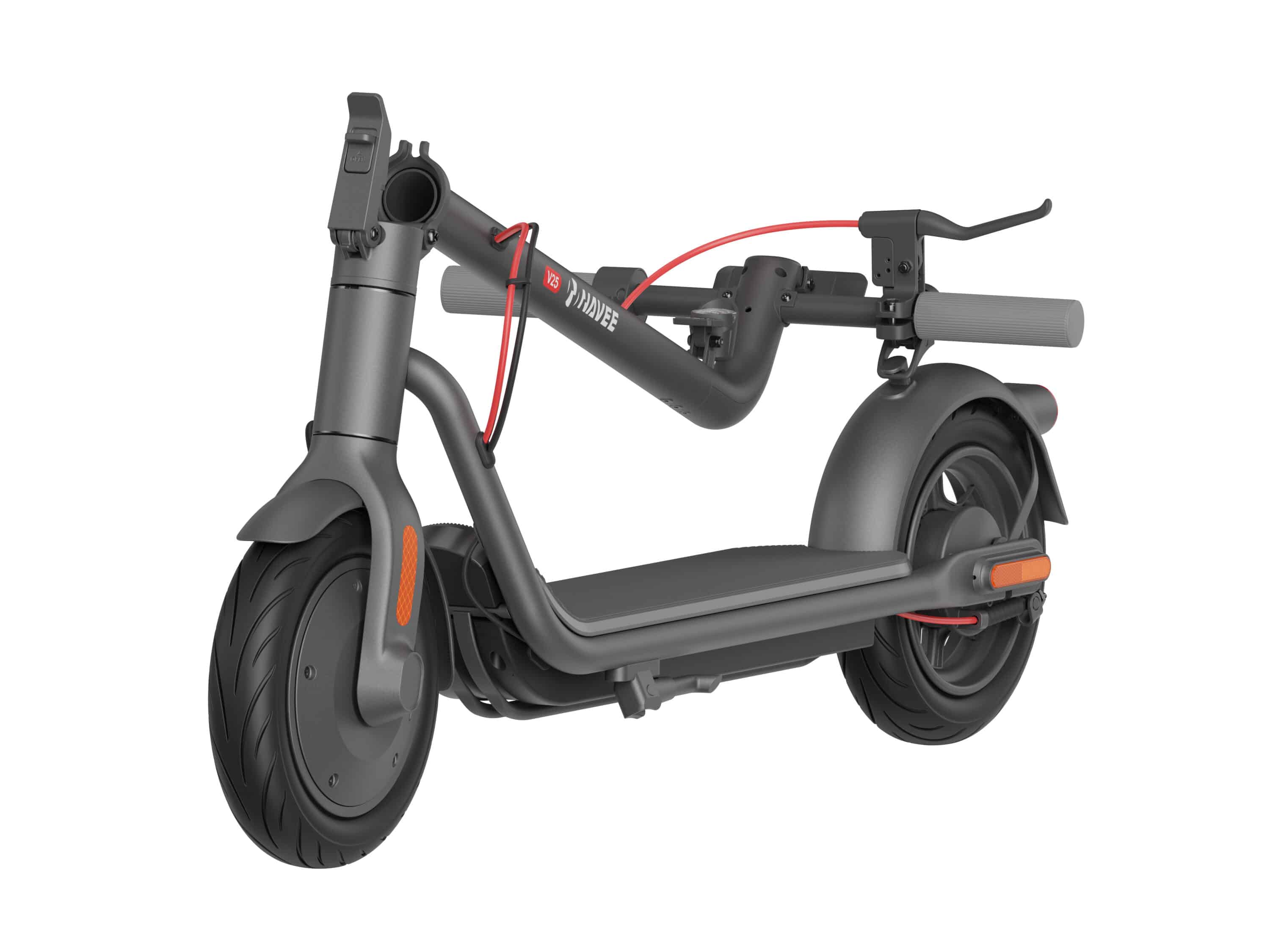 Das klappbare Design des Scooters macht ihn nicht nur einfach zu transportieren, sondern ermöglicht auch eine platzsparende Aufbewahrung. Damit passt der V25 perfekt in den Alltag moderner Stadtbewohner.