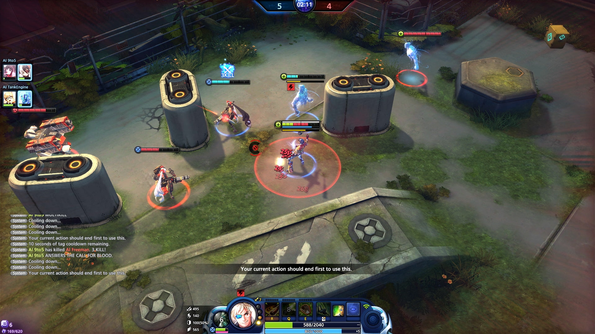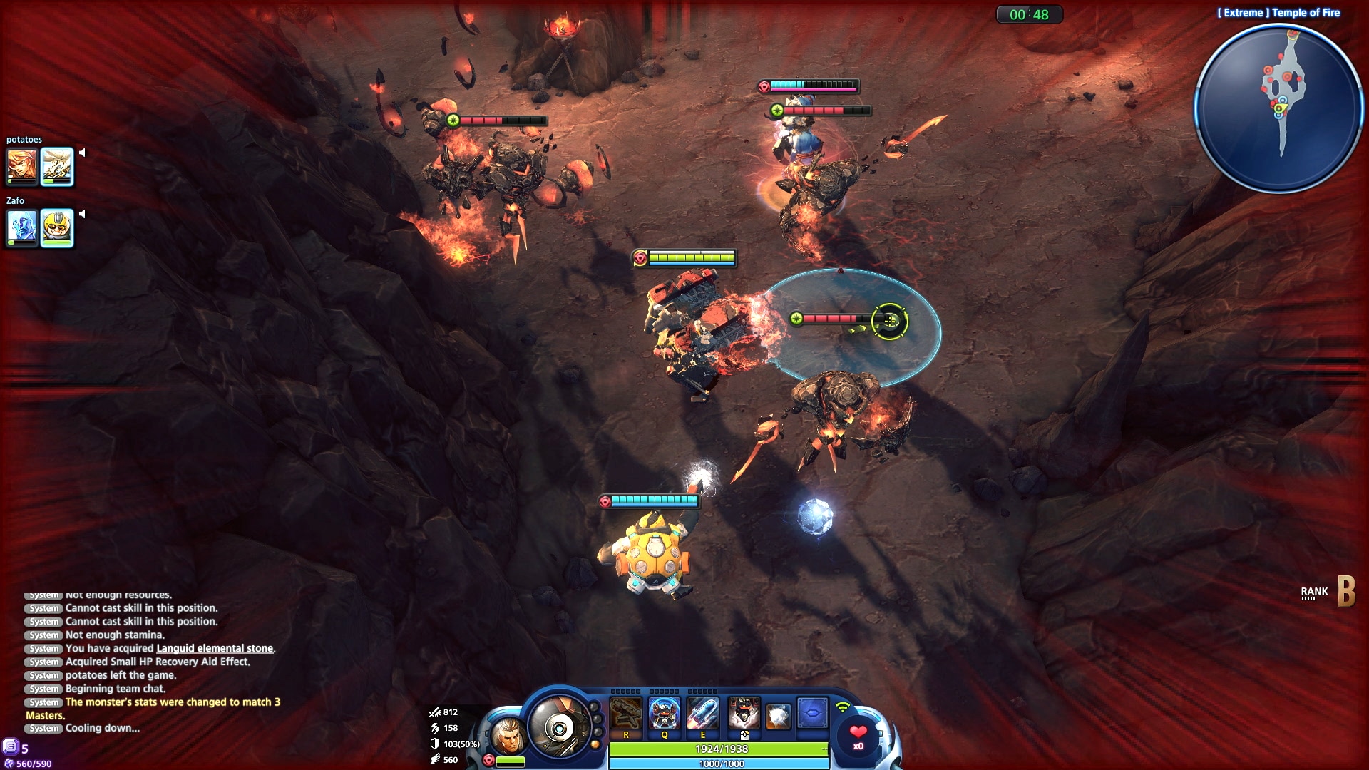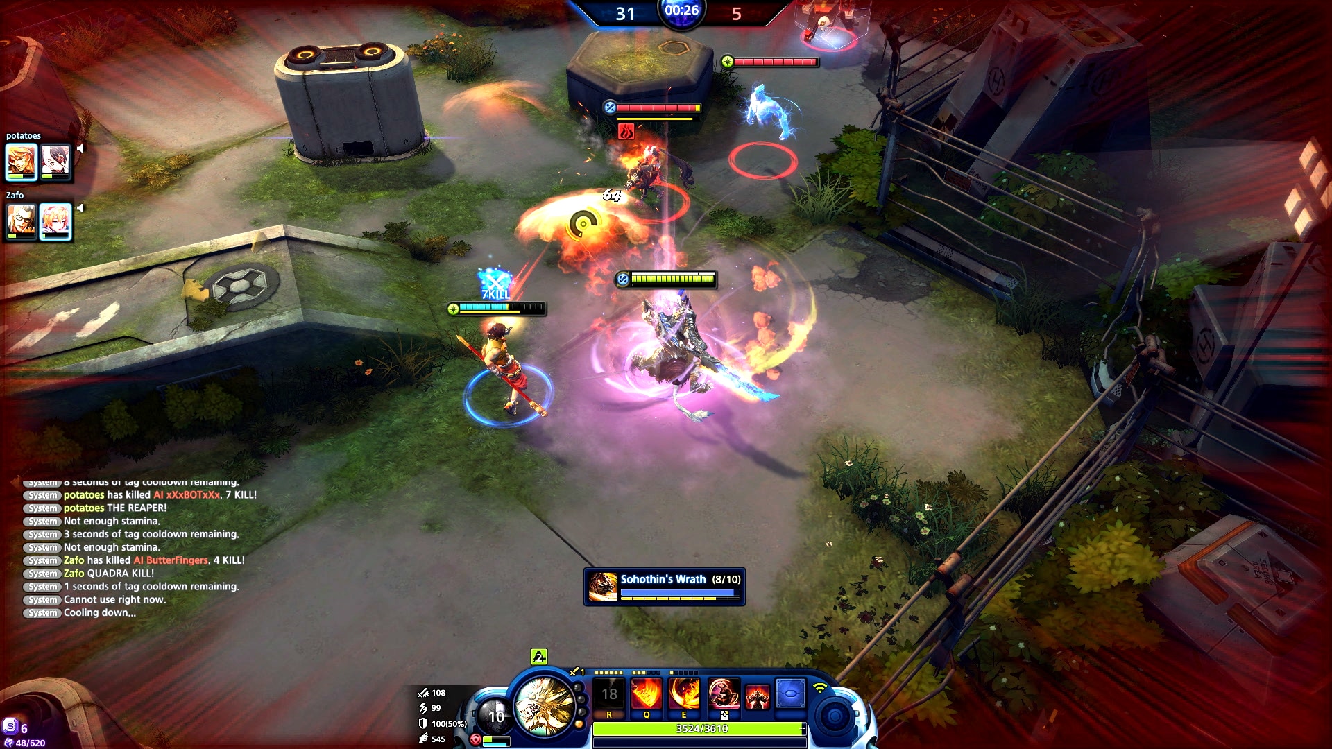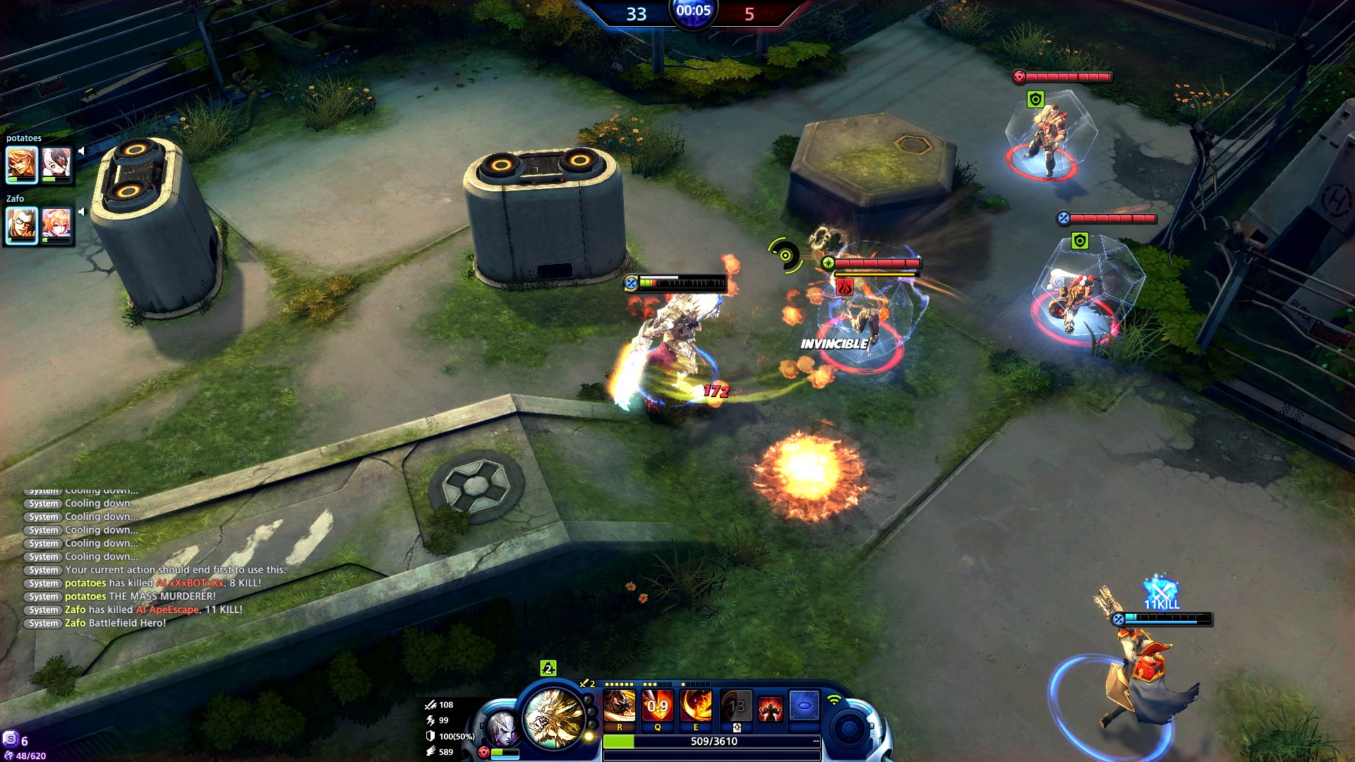 Wie in jedem MOBA besitzt jeder „Master“ auch unterschiedliche Fähigkeiten, die ihr gegen eure Feinde einsetzen könnt. Als Tasten für eure Fähigkeiten benutzt ihr „Q, E und R“, da „W, A, S und D“ zum Bewegen des Charakters benutzt werden. Der Rechtsklick ist eine defensive Fähigkeit um euch gegen Angriffe zu schützen.