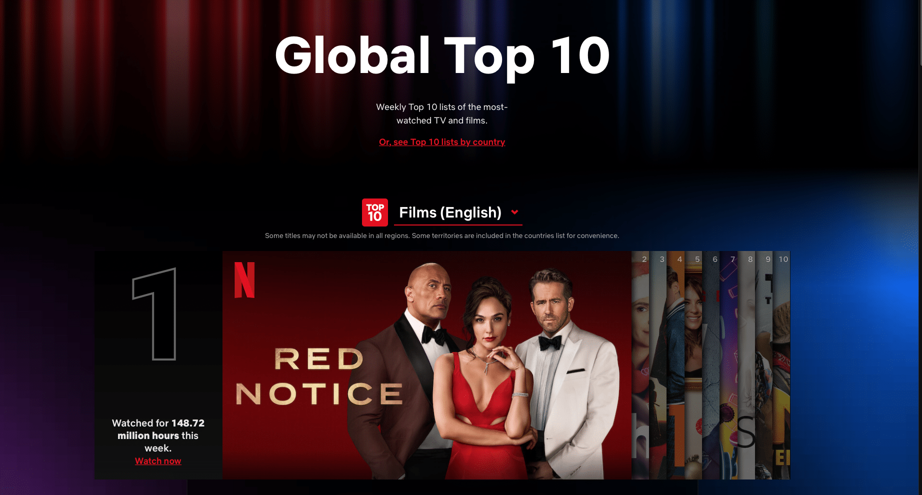 Auf der neu geschalteten Webseite kannst du spielend leicht herausfinden, welche Filme und Serien gerade in welchem Teil der Erde angesagt sind. Wie der Name bereits vermuten lässt, zeigt dir die Webseite dann jeweils die Top 10 der erfolgreichsten Filme oder Serien im jeweiligen Land an. Grundlage des Rankings sind die Stunden, welche von Usern weltweit oder in einem bestimmten Land in der letzten Woche konsumiert wurden. Der Film oder die Serie mit den meisten Stunden steht selbstredend auf Platz 1. Neben dem Platz selbst wird dir außerdem angezeigt, wie viele Wochen sich der betreffende Titel bereits in der Top 10 befindet.