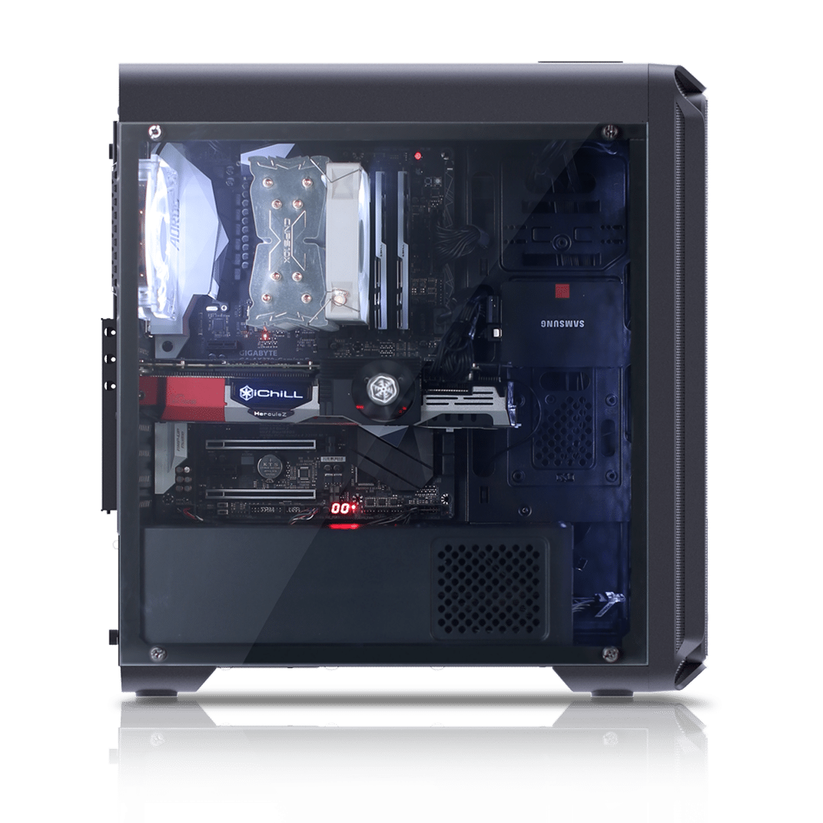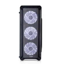 Je vier Lüfter und weiße LED-Beleuchtung, integrierte Lüftersteuerung; das sind die Eckpunkte, die der Hersteller nennt. Weiterhin wurden zur Komponentenkühlung verschiedene Konfigurationsmöglichkeiten geschaffen. Für das coole Aussehen sorgt das Seitenteil aus getöntem Acrylglas.