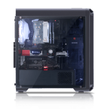 Neben dem bereits erwähnten Acrylglas-Seitenteil punktet das Gehäuse mit einer mattschwarzen Oberfläche und einem ebenso lackierten Innenraum. Die Vorderseite unterscheidet beide Modelle: der i3 zeigt hier ein Mesh-Frontpanel mit sehr guter Belüftung, während das Modell i3 Edge besonders auf das Aussehen fokussiert ist, und auch im Frontbereich mit Acrylglas ausgestattet wurde.