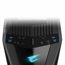 Der Aorus C700 kommt mit seinen 144 Litern Fassungsvermögen auf die Maße von 67,1 x 30,1 x 71,4 (L x B x H) und ein Gewicht von 19,2 kg. Dazu hat es anschlussseitig einen USB 3.1 (USB 3.2 Gen 2) Type C Anschluss, vier USB 3.0 (USB 3.2 Gen 1) Anschlüsse, einen HD-Audio Anschluss und einen HDMI-Anschluss, mit welchem zum Beispiel ein VR-Headset verbunden werden kann. Bei den Materialien wurden Aluminium, Glas, Kunststoff und Stahl verwendet.