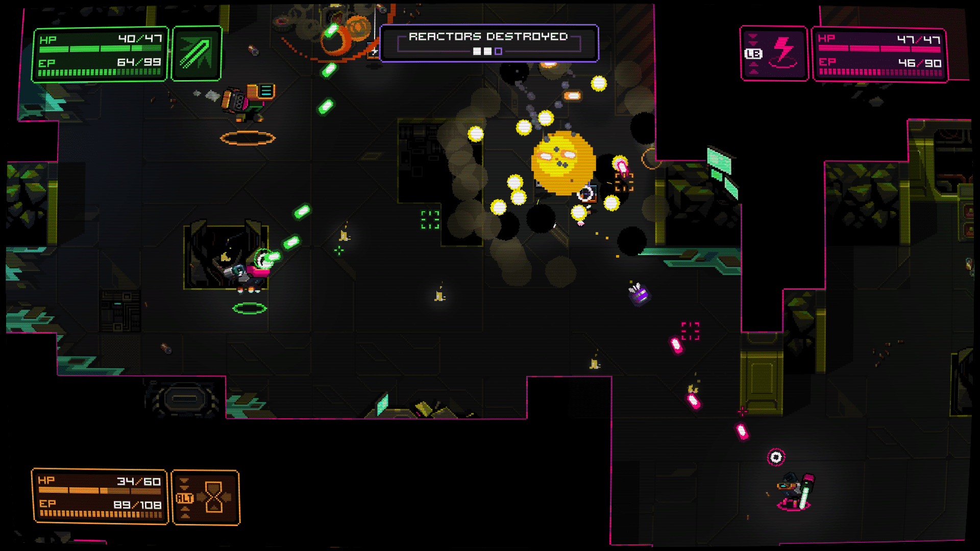 Ist ein Level geschafft, beginnt die zweite Phase, in welcher Spieler ihre Ausrüstung managen und verkaufen sowie Erfahrungspunkte in neue Fähigkeiten investieren können. Zudem kann in eine der anderen beiden Klassen gewechselt werden. Ist das geschafft, generiert das Spiel ein neues zufälliges Level. Anhand verschiedener Attribute, wie Loot-Menge und Größe, kann der Spieler entscheiden ob er einen Reboot ausführen möchte. Dies ist bis zu 3 mal möglich und bedeutet, dass ein neues Level generiert wird. In seltenen Fällen stößt der Spieler so auf besondere Bosskampf-Level, wobei hier das gesamte Level nur aus Bossgegnern besteht, welche besonders viel Loot versprechen. Im Interview erklärten uns die Entwickler, dass das richtige Loot der einfachste Weg zum Erfolg in Neurovoider ist.