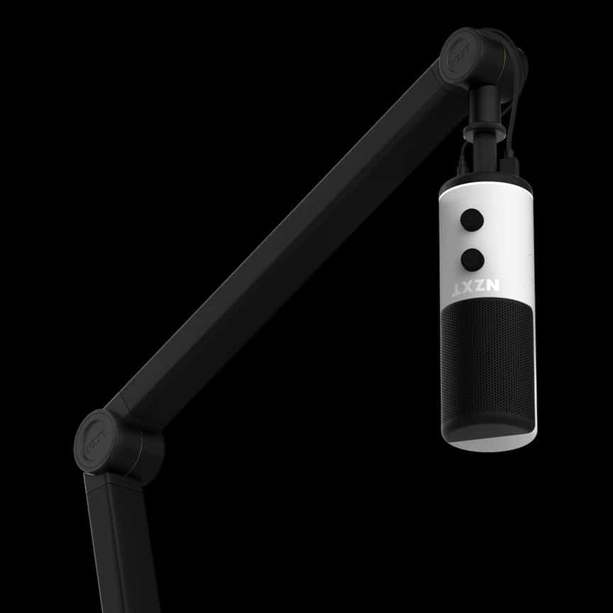 Alternativ bietet der Hersteller auch einen geräuscharmen Mikrofon-Schwenkarm an, der mit einem versteckten Kabelmanagement aufwartet. Verborgene Federn sollen eine besonders flüssige Bewegung ermöglichen. Er ist 108.1 x 9.65 x 5.75cm lang und aus Aluminium gefertigt. Dabei kann der Boom-Arm an Tischen mit einer maximalen Dicke von 5 cm befestigt werden und ist bis zu einem Gewicht von 1,18 kg belastbar.