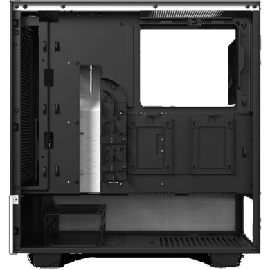 An der grundlegenden Raumaufteilung hat sich im Vergleich zum normalen H510 nichts geändert. So setzt man weiterhin auf einen zweigeteilten Innenraum, der Platz für Mainboards bis zum ATX-Standard bietet und über die ikonische Kabelführungsleiste und ununterbrochene Seitenwand aus gehärtetem Glas verfügt. Auf Beleuchtungsoptionen und eine Kontrolleinheit zur Lüfter- und Beleuchtungssteuerung muss hingegen verzichtet werden.