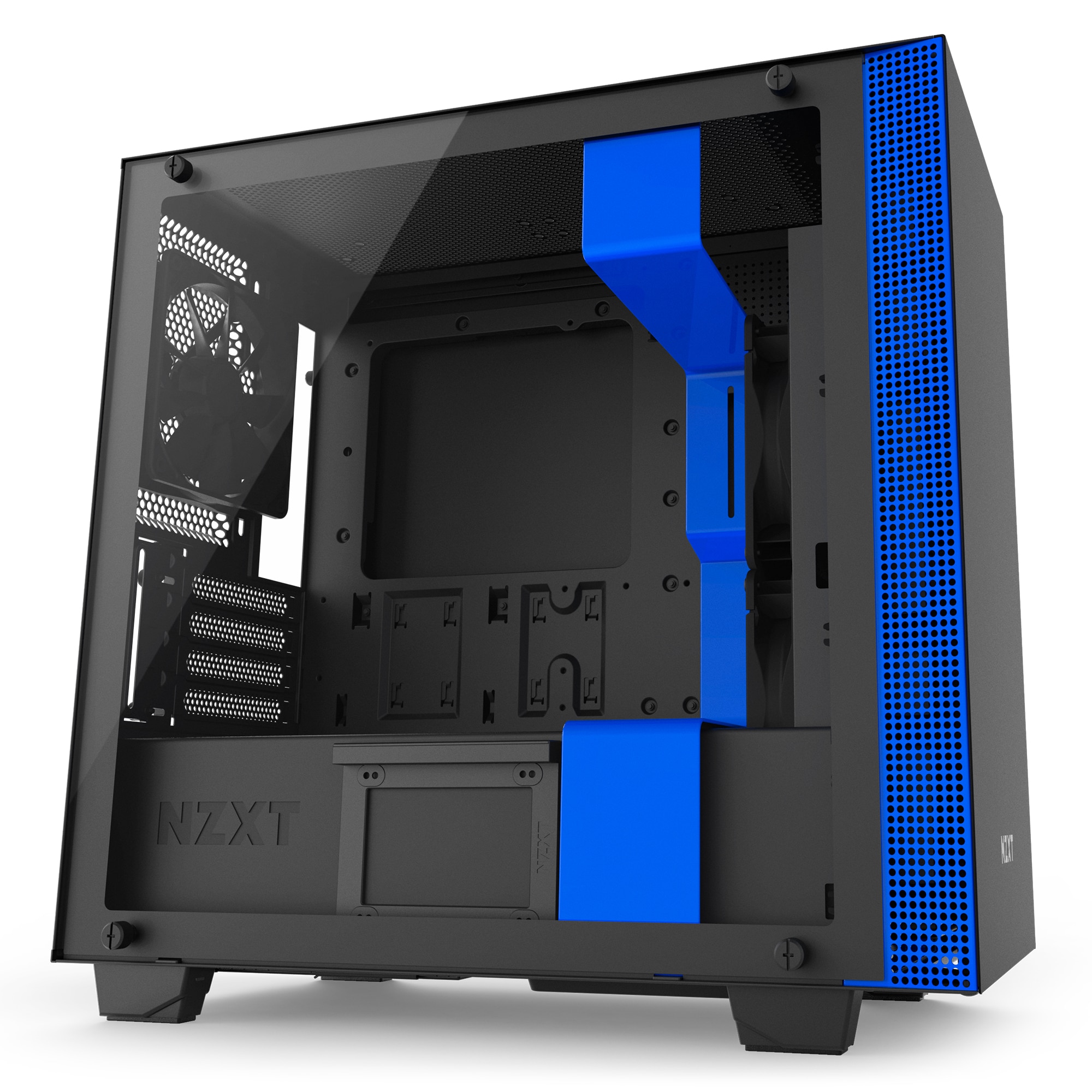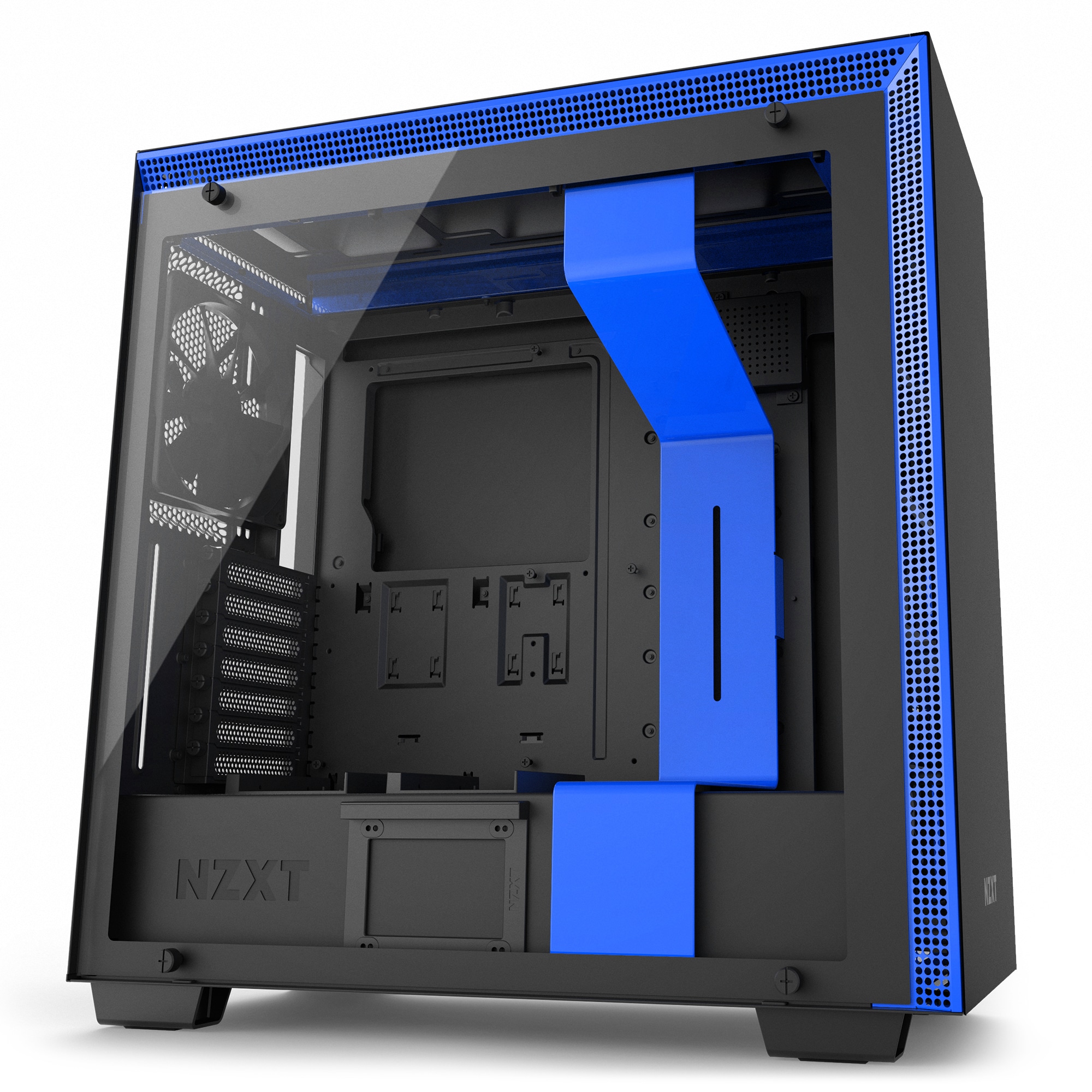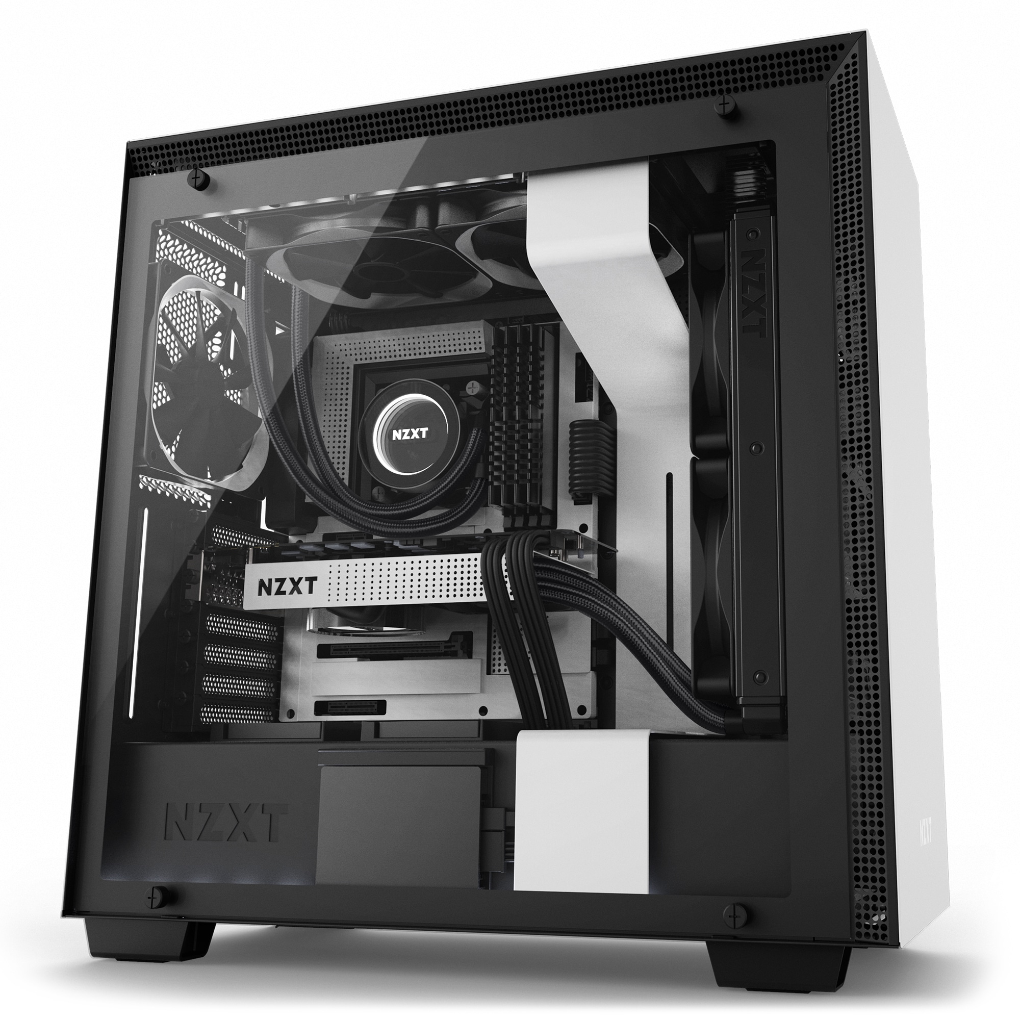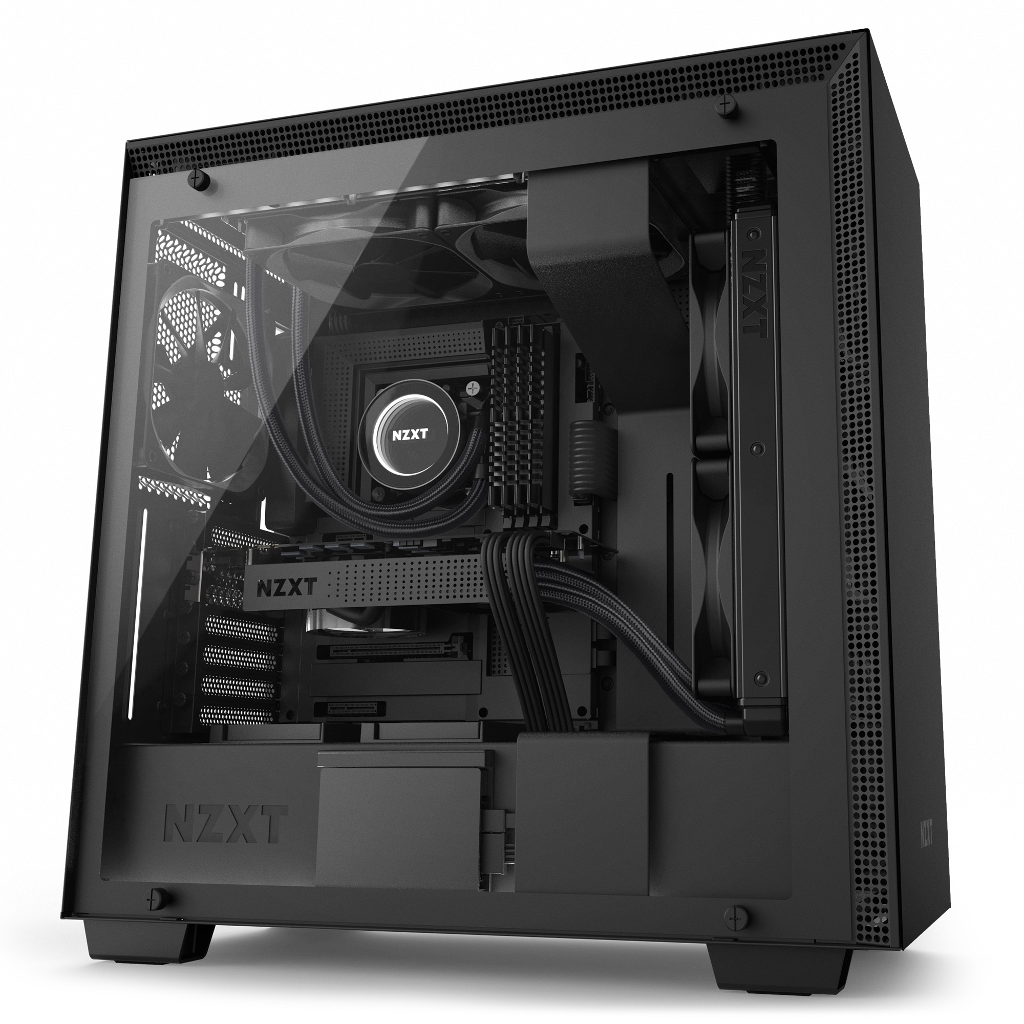 Darüber hinaus erleichtert NZXT den Einbau von Wasserkühlungen durch Drop-in-Einschübe und eine integrierte Reservoir-Halterung. Im Lieferumfang bereits enthalten sind F-Lüfter, die für einen konstanten Luftstrom im Inneren des Gehäuses sorgen sollen. Weiterhin sind Staubfilter ab Werk verbaut.