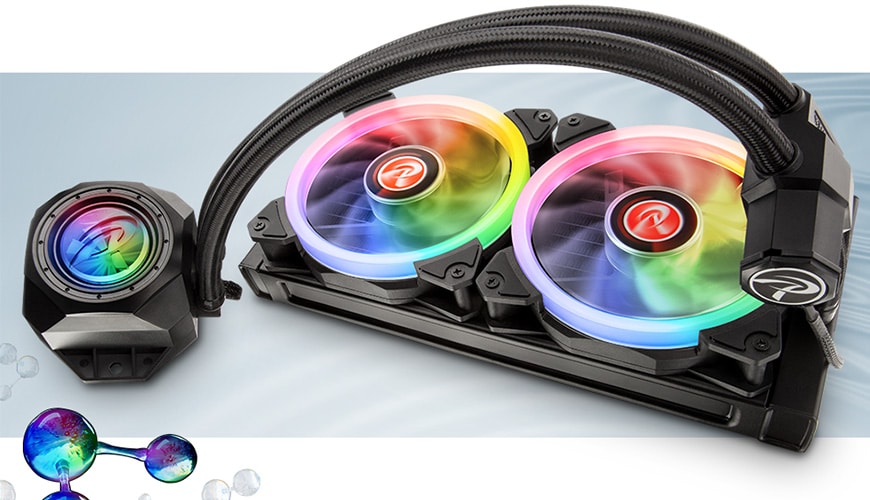 Beide All-in-One-Wasserkühlungen basieren auf hochwertigen Materialen und weisen einen durchdachten Aufbau auf. So befindet sich die klassischerweise im Kühlkörper zu findende Pumpe bei diesen Modellen in die Nähe des 240-mm-Radiators, was den Einbau vereinfachen soll. Die maximale Förderleistung von 66 Litern pro Stunde soll eine ausreichende Zirkulation sicherstellen. Durch die schnelle Zirkulation vom Kupfer-Kühlkörper zum Radiator sollen auch leistungsstarke CPUs problemlos gekühlt werden können. Problematisch ist, dass der Radiator aus Aluminium besteht. Ein transparentes Fenster im Kühlkörper bietet darüber hinaus die Möglichkeit, die Durchflussgeschwindigkeit mit Hilfe eines Rädchens zu überprüfen. Dort befindet sich auch die integrierte RGB-Beleuchtung, welche sich je nach Temperatur oder Geschwindigkeit des Wassers färben kann.