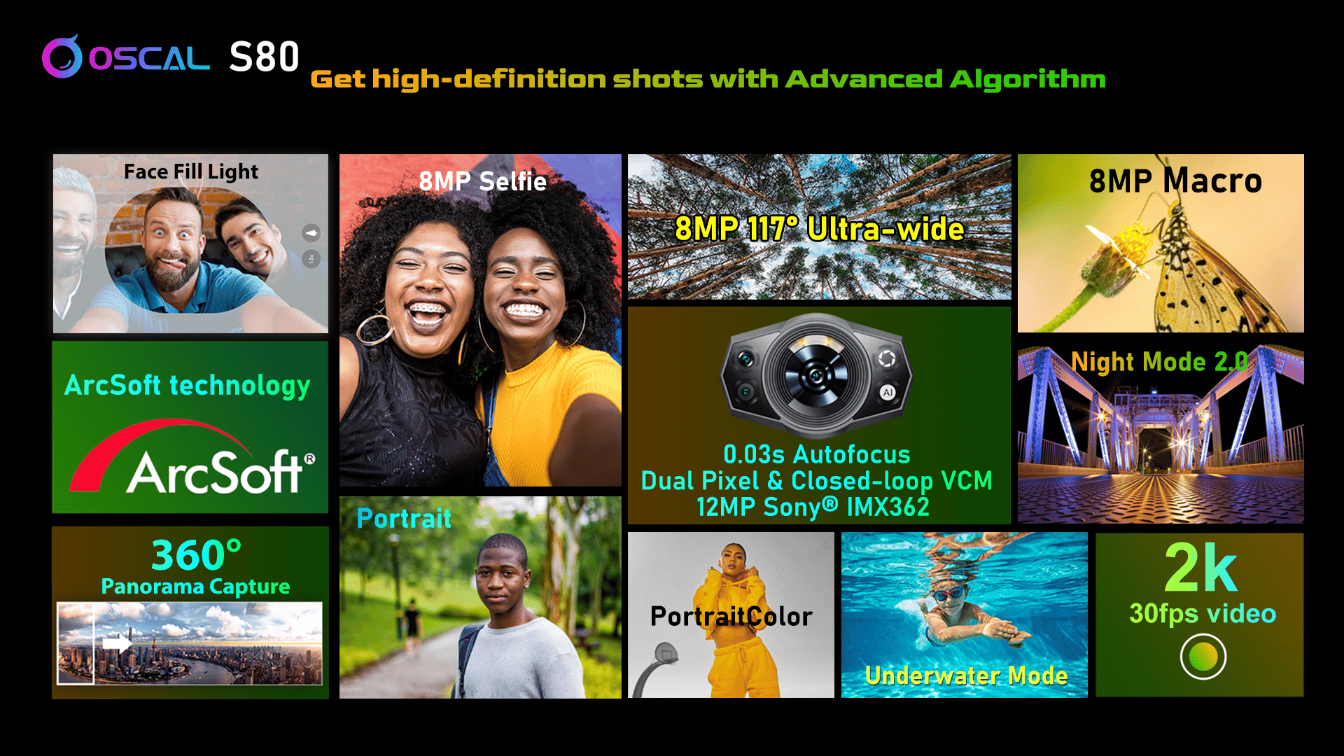 Das Oscal S80 bietet vor allem für ein Outdoor-Smartphone spannende Kameras. Angeführt von einer 12-Megapixel-Hauptkamera (Sony IMX362) kommt die Linse mit einem 0,03 Sekunden schnellen Autofokus daher und bietet 10 fps kontinuierliches Fotografieren für Bildserien.