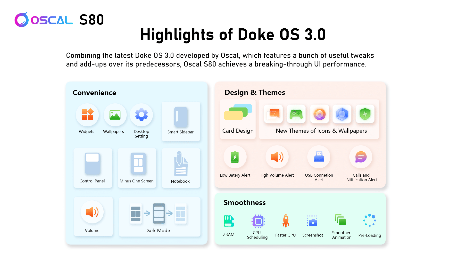 Gleichzeitig sorgt eine effektive Graphite-Kühlung dafür, dass das Smartphone auch unter Last angenehm kühl bleibt. Es kann die Temperatur der CPU um bis zu 8 Grad Celsius reduzieren. Als Betriebssystem kommt Doke OS 3.0 zum Einsatz, das auf Android 12 basiert.