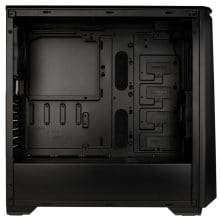 Auch wenn der P400A im ersten Blick etwas schicker aussieht als sein Vorgänger, so sind die beiden Modelle sich dennoch recht ähnlich. Insbesondere auf dem Gebiet der technischen Ausstattung. An der Größe des Midi-Towers wurde im Vergleich zum Vorgängermodell nichts verändert. Es gibt weiterhin nur einen HDD-Käfig für zwei Laufwerke 3,5- oder 2,5-Zoll-Format. Hinter dem Mainboard-Tray können zwei weitere 2,5-Zoll-Datenträger montiert werden und durch optionale Halterungen können vier zusätzliche HDDs verbaut werden.