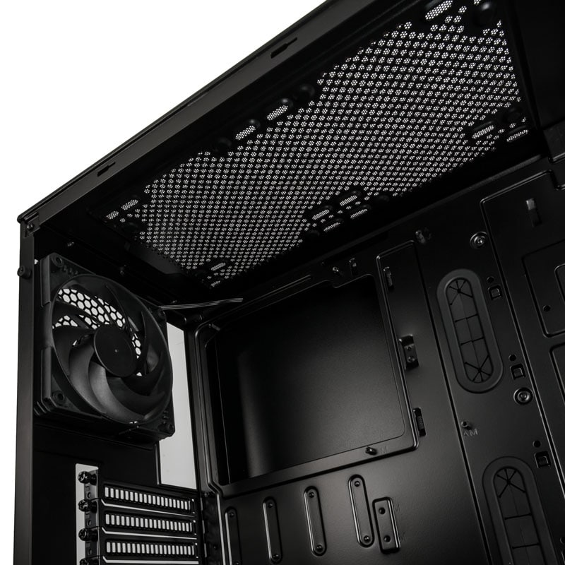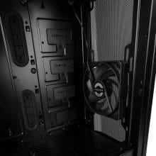 In der Basisvariante mit geschlossenem Seitenteil bietet der P400A zwei unbeleuchtete 120-mm-Lüfter sowie eine Lüftersteuerung. Bei der Version mit einsehbarer Temperglas-Scheibe sind dagegen drei adressierbare RGB-Lüfter verbaut. Auch eine RGB-Steuerung ist hier natürlich vorhanden, die wahlweise per Button oder übers Mainboard gesteuert werden kann. Neben zahlreichen Lüftern können natürlich auch Radiatoren montiert werden. Bis zu 280/360 Millimeter sind möglich.