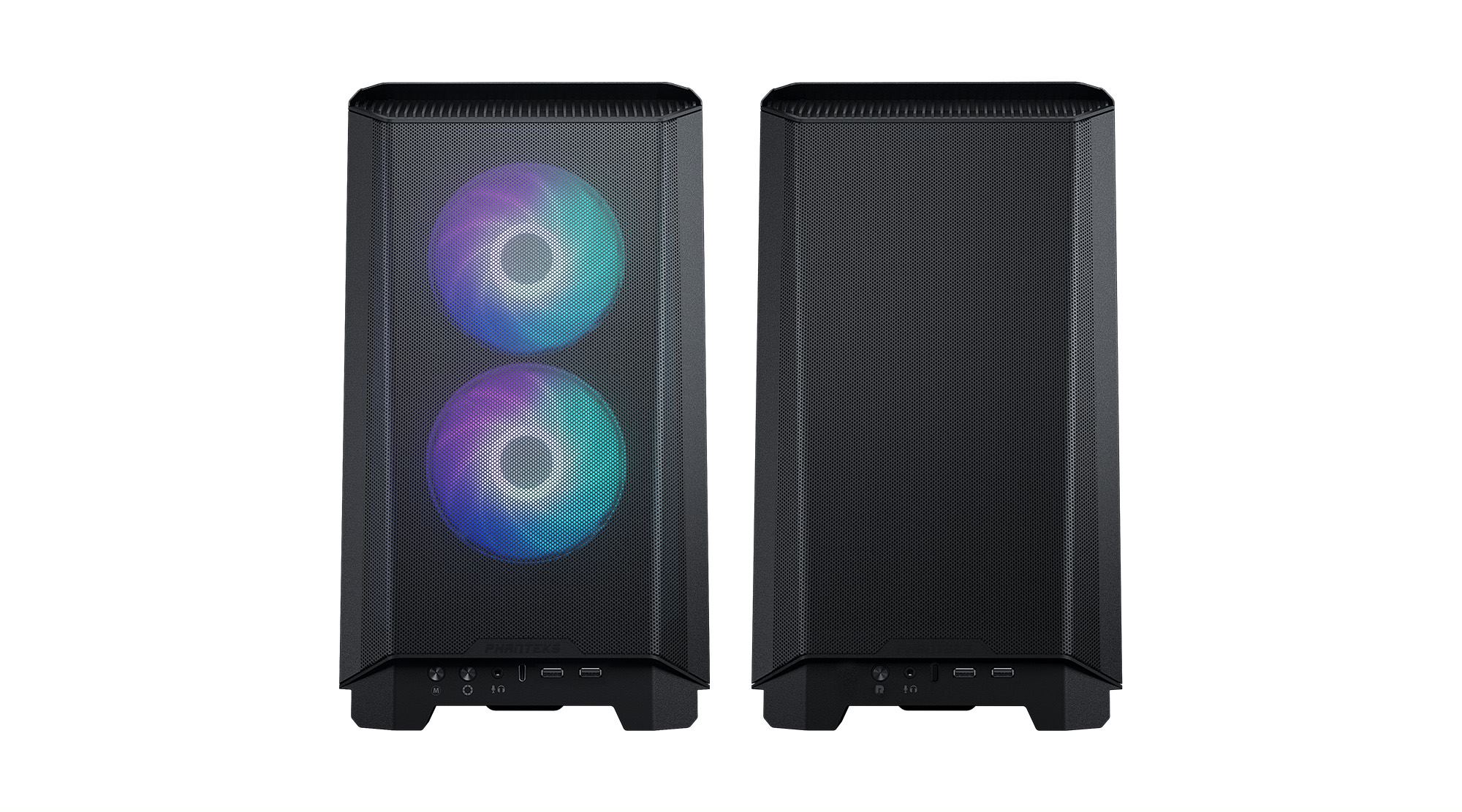 Das P200A gibt es in zwei Varianten, zum einen als P200A Performance und zum anderen als P200A D-RGB. Das Phanteks Eclipse P200A Performance kommt mit zwei 120-mm-PWM-Lüftern und hat links eine Metallgitter-Seitenwand. Dagegen hat das Phanteks Eclipse P200A D-RGB zwei 120-mm-D-RGB-PWM-Lüfter, die Seitenwand ist aus gehärtetem Glas und der D-RGB-Controller ist softwarefrei und die Steuerung leicht bedienbar. Darüber hinaus hat es einen USB-C-Gen-2-Anschluss, dieser ist in der Performance-Variante nicht dabei.