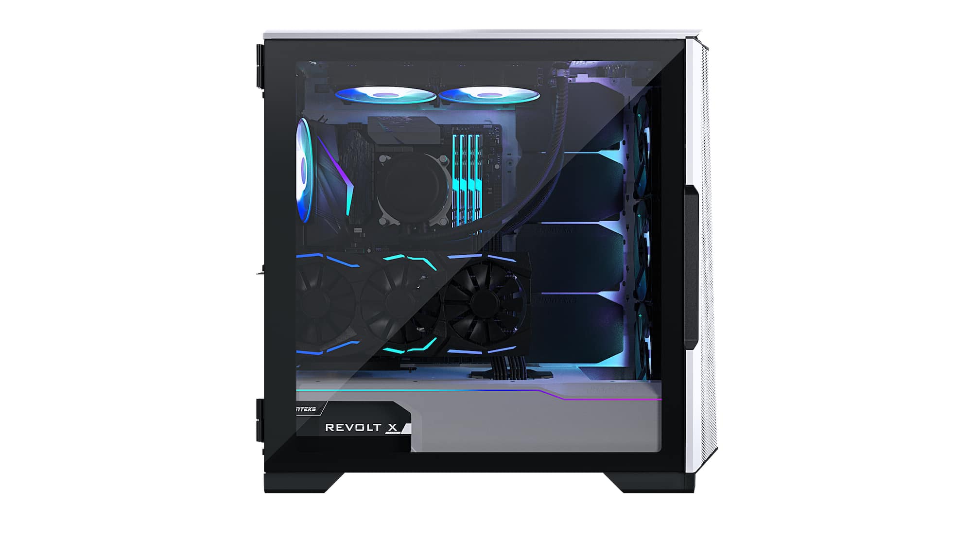 Mit Hilfe eines optionalen Brackets kann sogar ein zweites System eingebaut werden. Das geräumige Innen-Layout bietet natürlich Platz für leistungsfähige Kühllösungen – CPU-Kühler dürfen bis zu 190 mm hoch sein, während Radiatoren mit bis zu 420 mm Platz finden. Bis zu sieben Lüfter (bei einer Größe von 120 mm) könnt ihr hier unterbringen, dabei sind zwei 140-mm-Lüfter bereits vorinstalliert. Grafikkarten dürfen bis zu 435 mm lang sein und können alternativ auch vertikal eingesetzt werden. Die schwenkbare Seitentür besteht aus Tempered Glas und ermöglicht den Blick auf alle Komponenten.