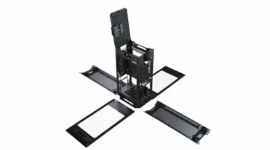 Schon während des Aufbaus lassen sich alle vier Abdeckungen einfach entfernen, damit alle Komponenten zugänglich sind. Das obere Gitter der Gehäuse lässt sich mit einer einfachen Berührung öffnen und bietet einen schnellen Zugang zum Mainboard und der GPU, auch nach dem Aufbau. Durch die obere Abdeckung werden auch alle externen Kabel optimal verborgen.