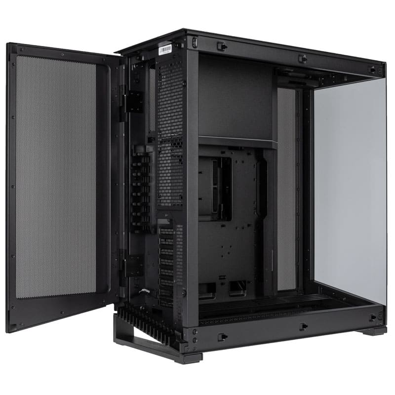 Der Boden ist abgeschrägt und bietet einen Freiraum von 65 mm, um einen größeren Ansaugbereich zu schaffen. In Kombination mit dem hochwertigen Staubfilter kann so jede Menge Frischluft zur GPU gebracht werden, die hier bis zu 450 Millimeter lang werden darf. Die mitgelieferte Halterung unterstützt überlange Grafikkarten bei horizontaler Installation. Mit einer optionalen Halterung kann die GPU auf Wunsch auch vertikal installiert werden.
