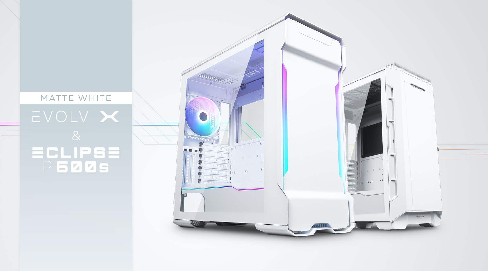 Phanteks hat einige spannende Neuankündigungen gemacht. Mit dem neuen Eclipse P600s und Evolv X in der Matte White Edition kommen zwei neue schicke Gehäuse im edlen Weißton in den Handel. Passende Kabel hat der Hardware-Experte mit seinen Gen 4 PCIe Riser-Kabeln ebenfalls angekündigt.