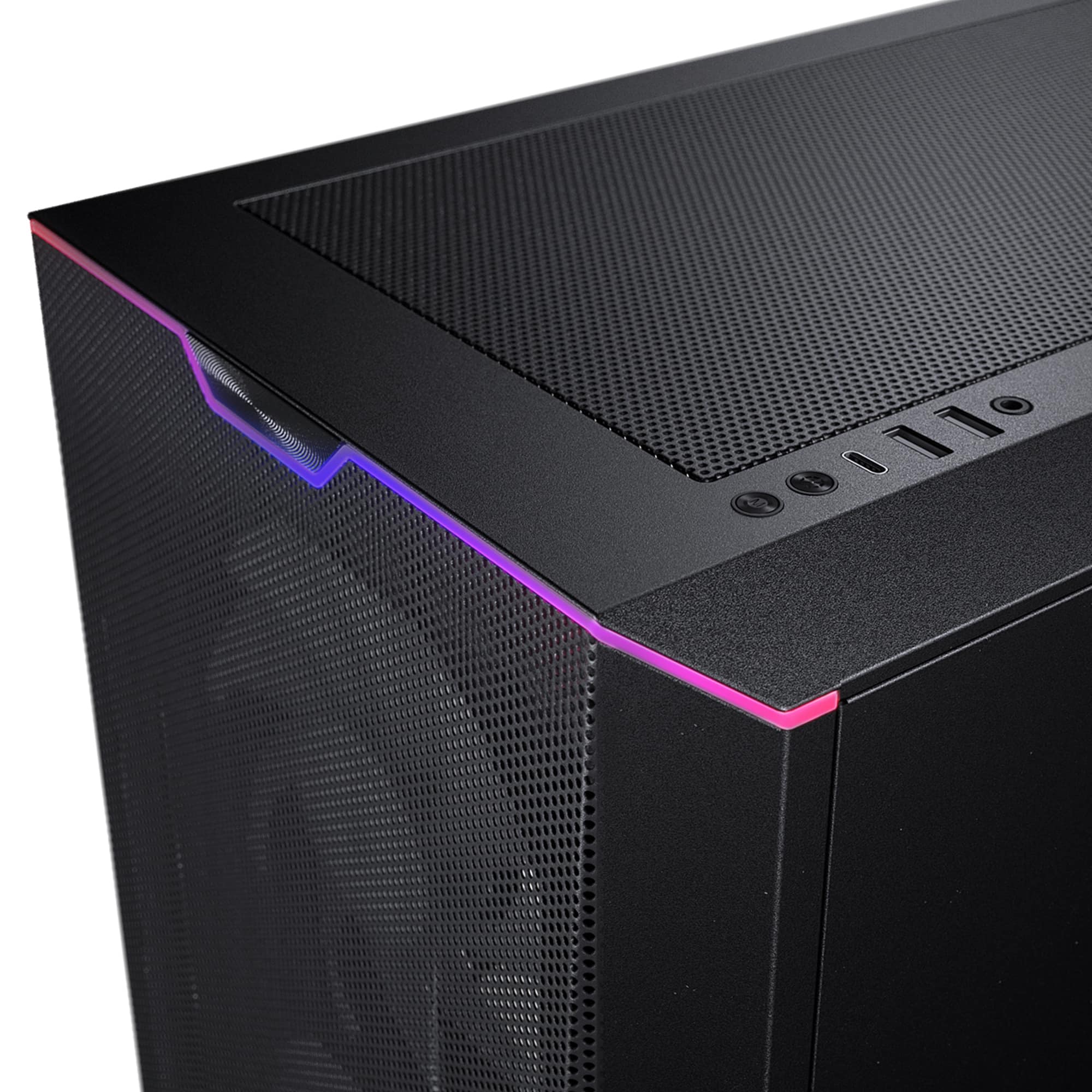 Natürlich bietet das Phanteks Eclipse G500A auch eine integrierte D-RGB-Beleuchtung, die mit vorprogrammierten Leuchteffekten angepasst werden kann – und das ganz ohne Software. Optional kann der D-RGB-Controller mit kompatiblen Mainboard synchronisiert werden und mit weiteren D-RGB-Produkten erweitert werden. Zwei LED-Strips sind bereits ab Werk verbaut, und zwar an der Front und Seite. Drei M25-140 D-RGB-Lüfter sind ebenfalls bereits standardmäßig an der Front installiert.