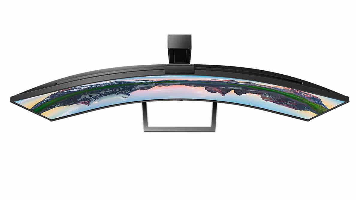 Der neue Philips 439P9H kann als der „kleine Bruder“ des von uns getesteten Philips 499P9H (GOLD Award) angesehen werden. Wirklich klein ist der 43-Zoll (110 Zentimeter) Monitor Philips 439P9H allerdings auch nicht. Die Auflösung des gebogenen 1800R-SuperWide-Displays liegt bei 3.840 x 1.200 Pixel. Das Gewicht des gewaltigen Monitors liegt inklusive Standfuß bei 14,4 Kilogramm.
