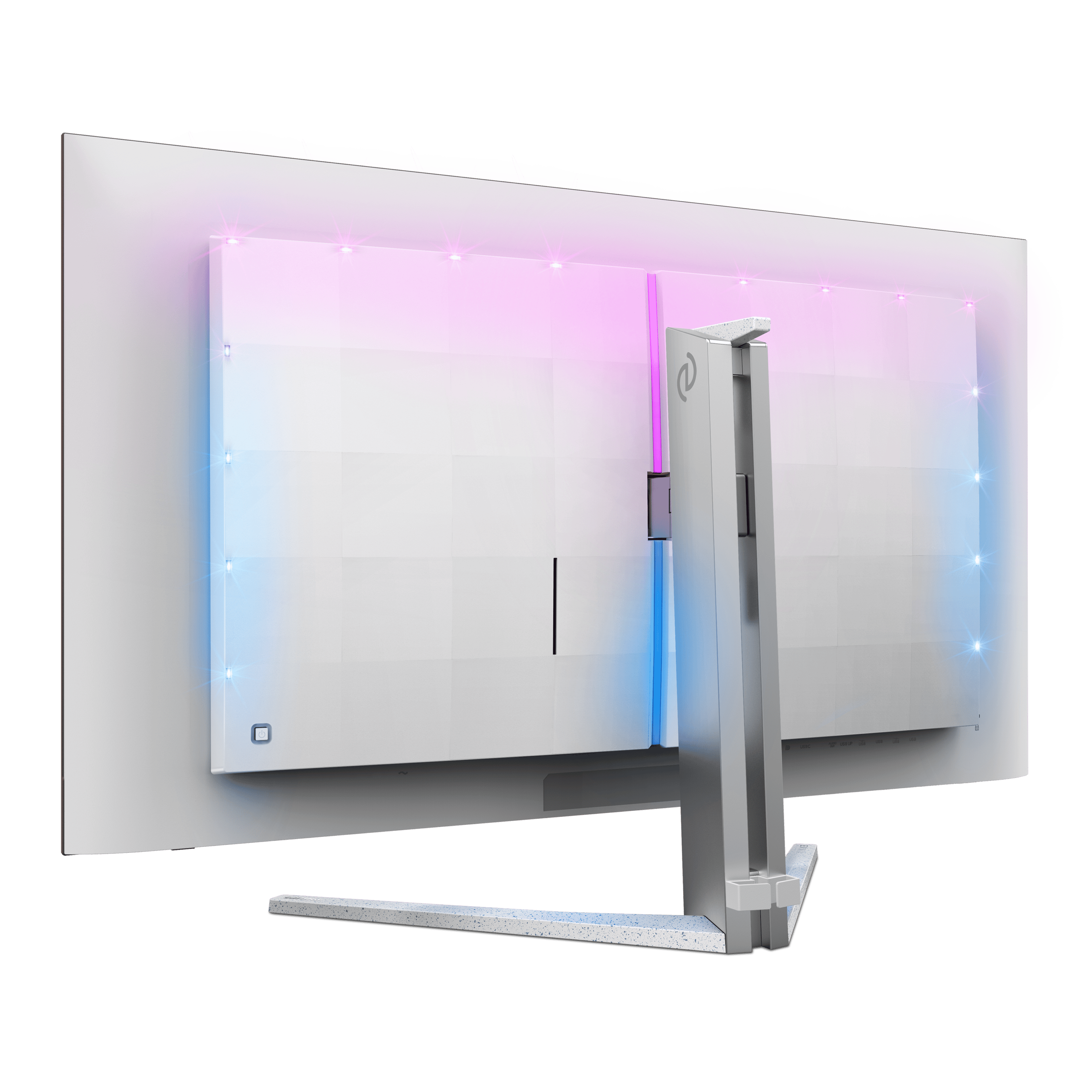 Integrierte Lautsprecher mit DTS-Sound, einen KVM-Switch zur geräteübergreifenden Nutzung von Peripherie, einen USB-C-Anschluss sowie einen höhenverstellbaren ergonomischen Standfuß bietet der Monitor ebenfalls. Geboten wird darüber hinaus die bekannte Ambiglow Hintergrundbeleuchtung des Herstellers.