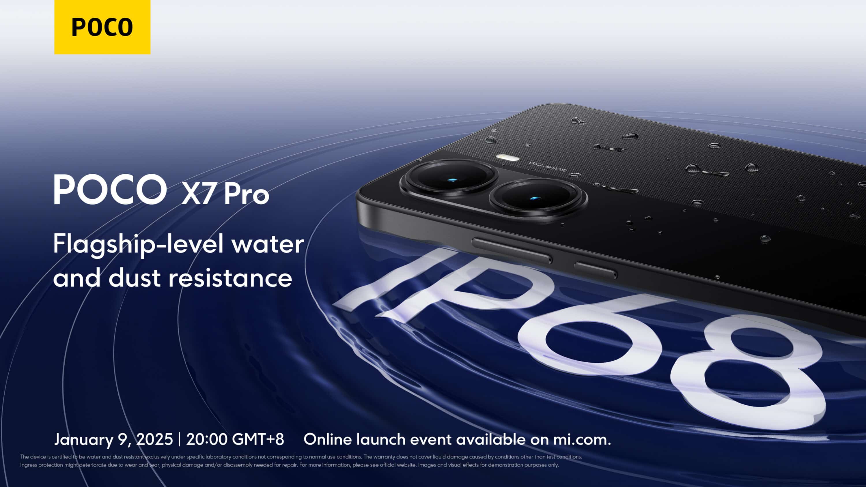 - Wasser- und staubgeschützt nach IP68: Der POCO X7 Pro ist wasser- und staubgeschützt und hält versehentlichem Verschütten, Regen oder staubigen Umgebungen stand.