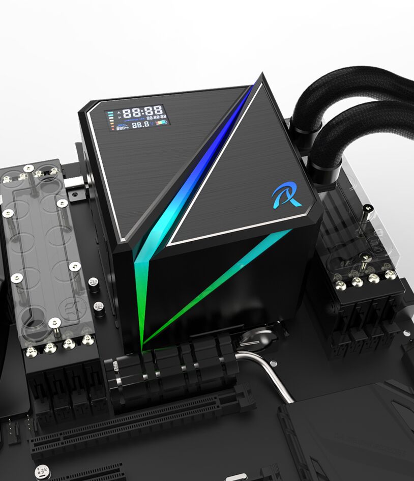 Die NYX 240 RBW All-in-One-Wasserkühlung ist im Premium-Segment eingeordnet. Die relativ kompakte Kühllösung verfügt über einen 240-mm-Kupferradiator und Kupferkühler. Die meisten günstigen All-in-One-Wasserkühlungen der Konkurrenz verfügen über Radiatoren aus Aluminium, das nicht so langlebig ist und eine schlechtere Wärmeleitfähigkeit besitzt. Außerdem verbaut Raijintek bei der NYX 240 RBW ein kleines Display auf dem Kühlkörper, das den Nutzer über die Temperatur informiert. Sowohl der Kühlkörper aus auch der Radiator verfügen über eine konfigurierbare RGB-Beleuchtung. Angeboten wird die Wasserkühlung, die mit ihre hohen Durchlaufmenge von 115 l/h überzeugen soll, ab Oktober. Den Preis hat Raijintek auf der Messe noch nicht genannt.