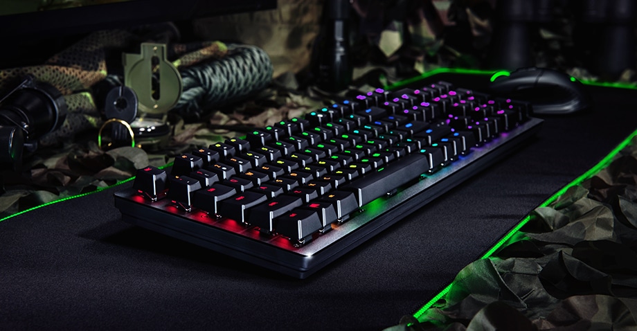 Mit der neuen Gaming-Tastatur „Huntsman“ präsentiert Razer eine Neuheit, die sich deutlich von herkömmlichen Gaming-Tastaturen unterscheidet. Die Switches kommen ohne Metallkontakt aus, was der Langlebigkeit der Tastatur dient – und für eine sofortige Auslösung des jeweiligen Befehls sorgt.