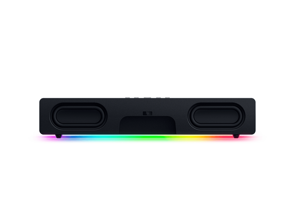 Die Bedienung erfolgt, wie bereits bei der V2, über Tasten an der Oberseite der Soundbar, während du mithilfe der Razer Audio App für iOS und Android oder Razer Synapse-Software für den PC per Equalizer Einfluss auf den Klang nehmen und die Chroma RGB-Beleuchtung anpassen kannst.