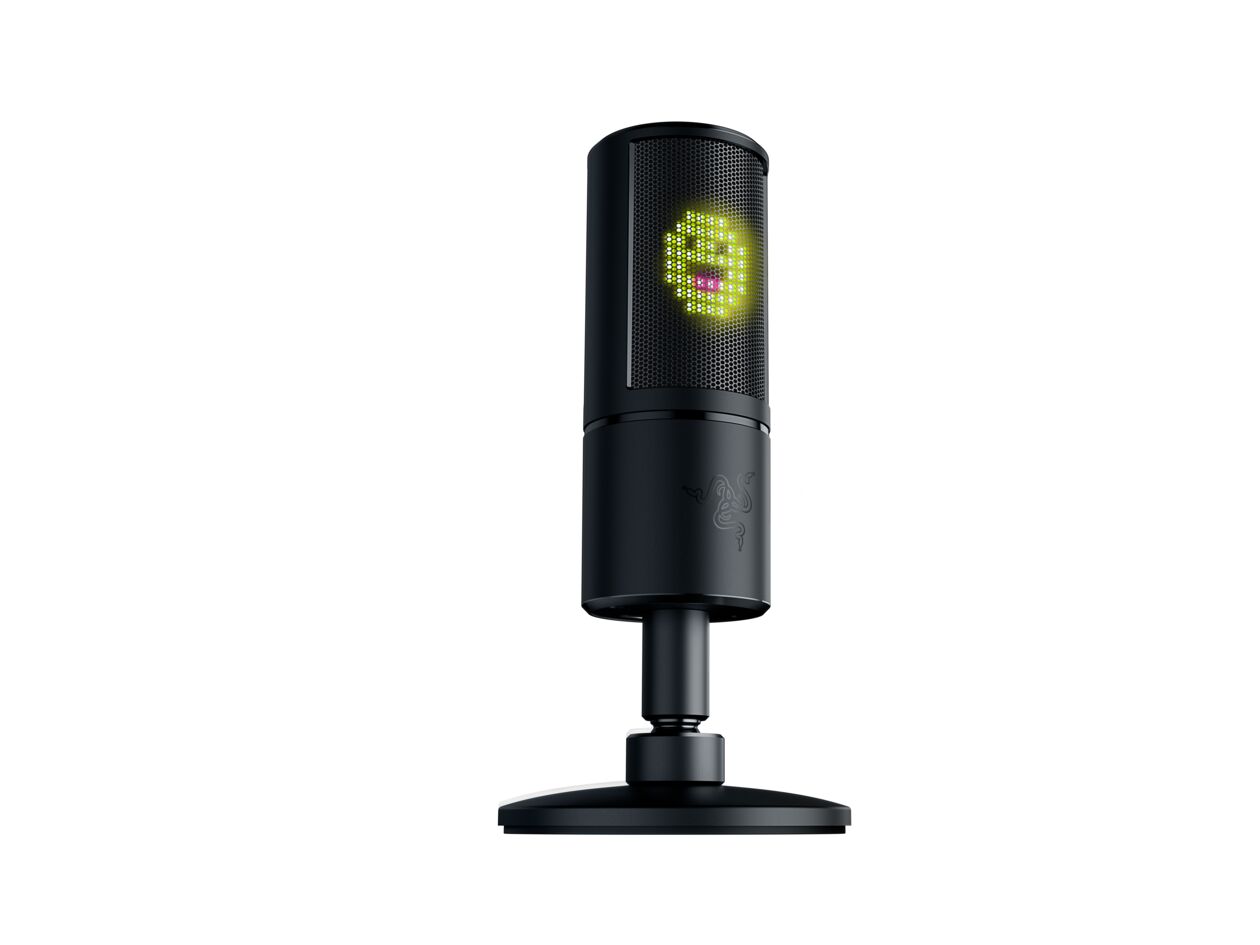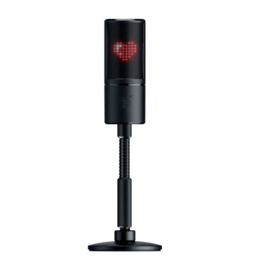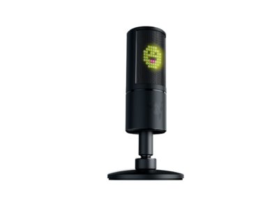 Angezeigt werden die Grafiken entweder permanent oder je nach Situation. Eine Verbindung mit dem Stream ermöglicht es zum Beispiel bei einem neuen Abo oder eine Spende ein anderes Bild anzuzeigen. Wahlweise können auch vom Chat genutzte Razer Seiren Emojis zusätzlich über das Display angezeigt werden. Kompatibel ist die dafür notwendige Software allerdings anfangs nur mit Twitch.tv und Streamlabs. Die Lautstärke des Mikrofons kann über ein Drehrad am Gehäuse reguliert werden. Außerdem gibt es einen Knopf zur Stummschaltung des Mikrofons.