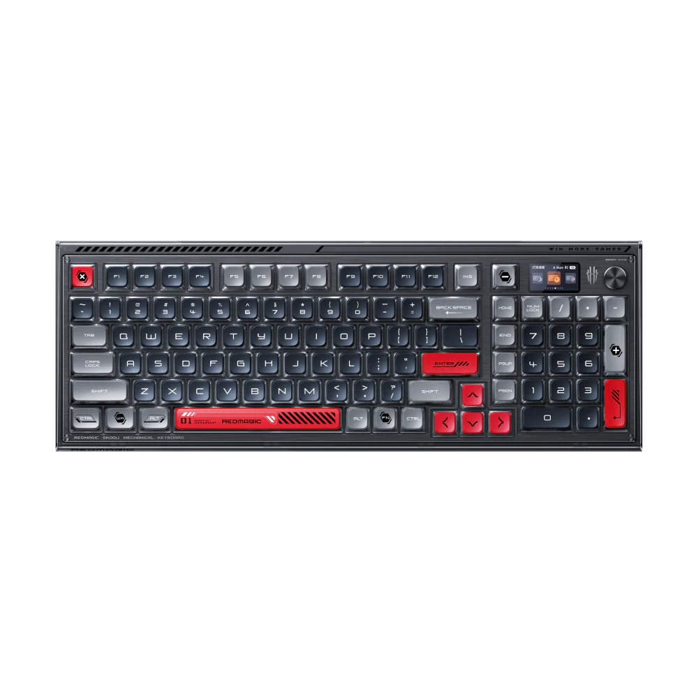 Zu den weiteren Besonderheiten des RedMagic Gaming Keyboard zählen eine Gasket-Struktur, die die Tippgeräusche reduzieren soll. Natürlich gibt es auch eine in 16,8 Millionen Farben anpassbare RGB-Beleuchtung, sowie ein 1,47 Zoll großes Display, über das sich verschiedene Systemeinstellungen anpassen oder Bilder darstellen lassen. Ein Drehregler ist ebenfalls mit von der Partie, mit dem sich verschiedene Aktionen durchführen lassen.