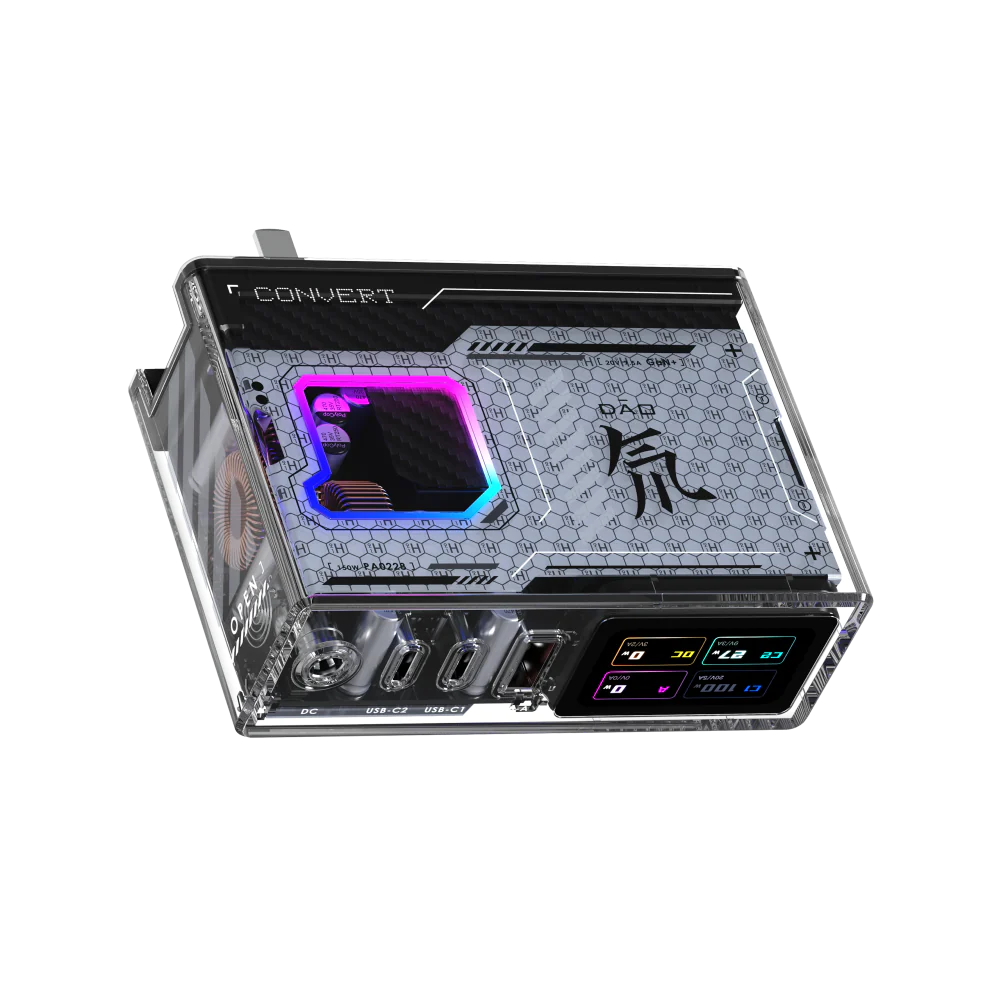 Das RedMagic DAO 150W ist mit 101 mm x 71 mm 35 mm angenehm kompakt gehalten und verfügt über eine anpassbare RGB-Beleuchtung, sowie ein einstellbares LC-Display. Letzteres zeigt den Ladestatus der verschiedenen Anschlüsse und soll sich durch einen Button an der Seite sowie eine Smartphone-App individualisieren lassen.