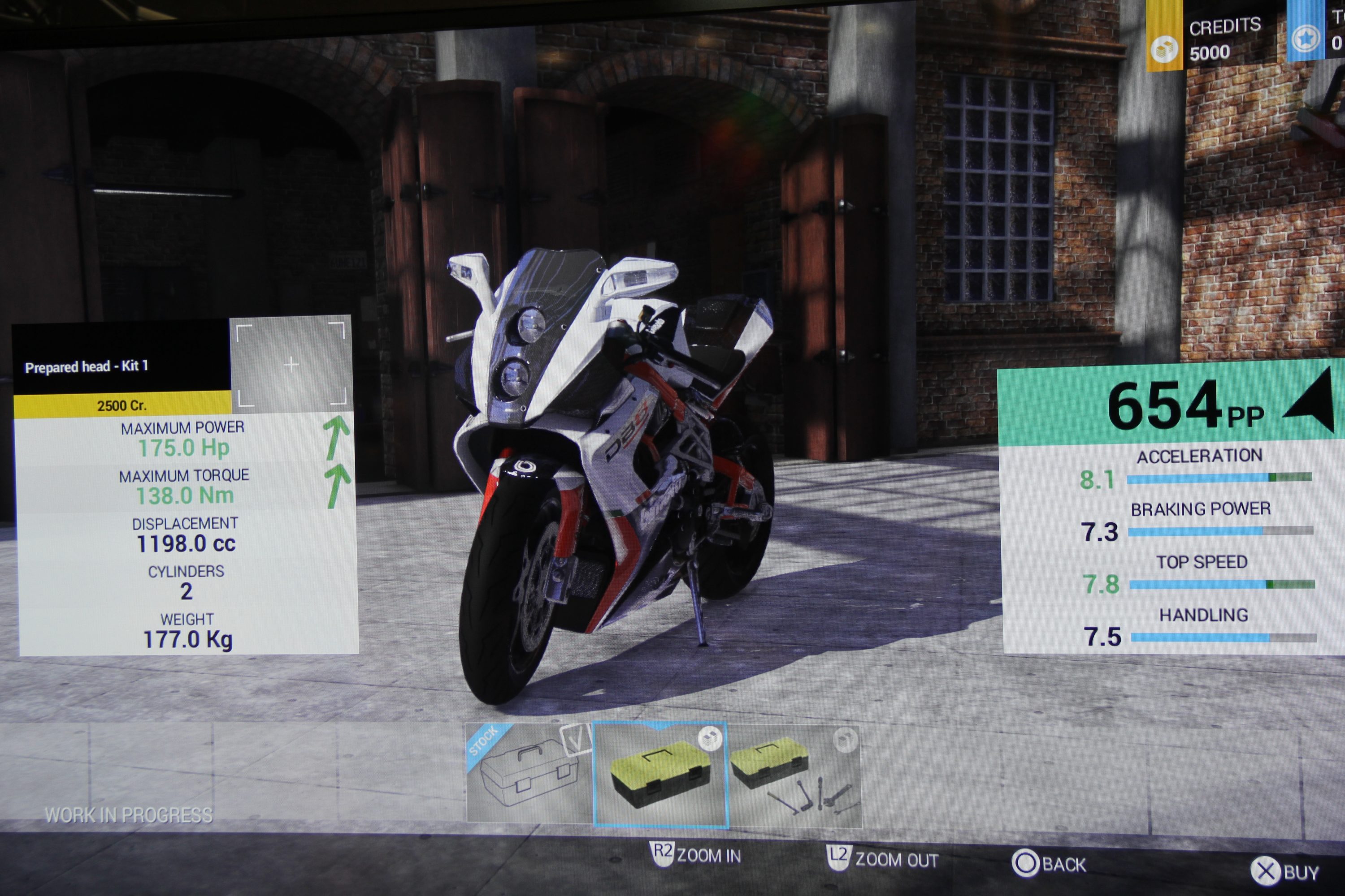 Spieler können ihre Maschinen in fünf verschiedenen Hauptbereichen modifizieren: Motor, Bremsen und Federung, Räder, Schaltung und Ästhetik. Hierfür soll es mehr als 1200 anpassbare Teile geben. Die Bikes sind „full customizable“. Sogar der Fahrer kann „getunt“ werden, Profil, Kleidung und Fahrstil lassen sich individuell anpassen. Die Motorräder in der Garage zu entwickeln ist eindrucksvoll, seine Maschinen dann aber auch realistisch in Action zu erleben ist ein anderer Zweig des Spiels.