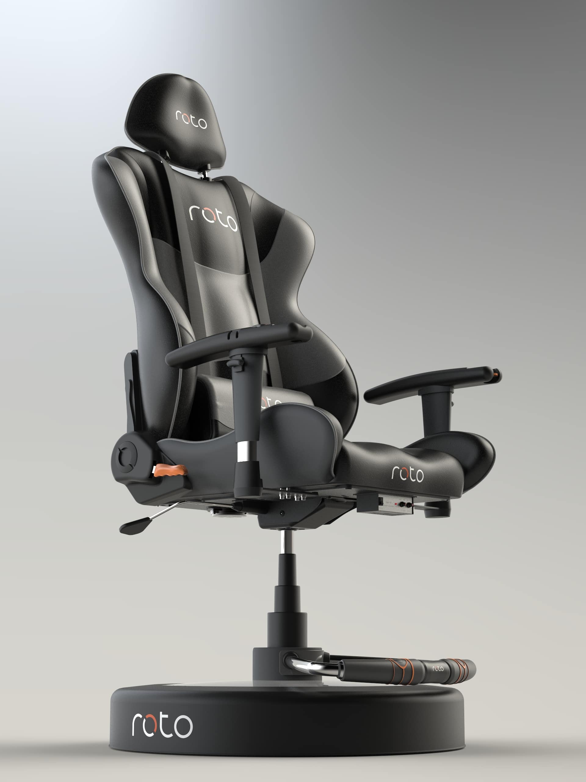Um das Virtual Reality Erlebnis gibt es einiges an Zubehör für den Robo VR Chair. Es können Lenkräder oder HOTAS-Systeme am Stuhl angebracht werden. Die Roto VR-Steuerbox bietet vollständige Konnektivität und dient als zentraler Hub. Sie befindet sich an der Unterseite des Sitzes und verfügt über drei USB-Anschlüsse, zwei USB-Ladeanschlüsse, einer Notfalltaste und 24 V 2A-Stromversorgung für zusätzliches Zubehör. Mit den Roto VR Double Rumble spürt der Spieler Gas, Schalthebel, Stürze, Turbulenzen, Fahrwerke und vieles mehr, als ob er selbst in der Achterbahn sitzt oder im Geländewagen durch den Jungle fährt. Die Module sind an der Stuhlrück- und unterseite befestigt und mit der VR Control Box verbunden.