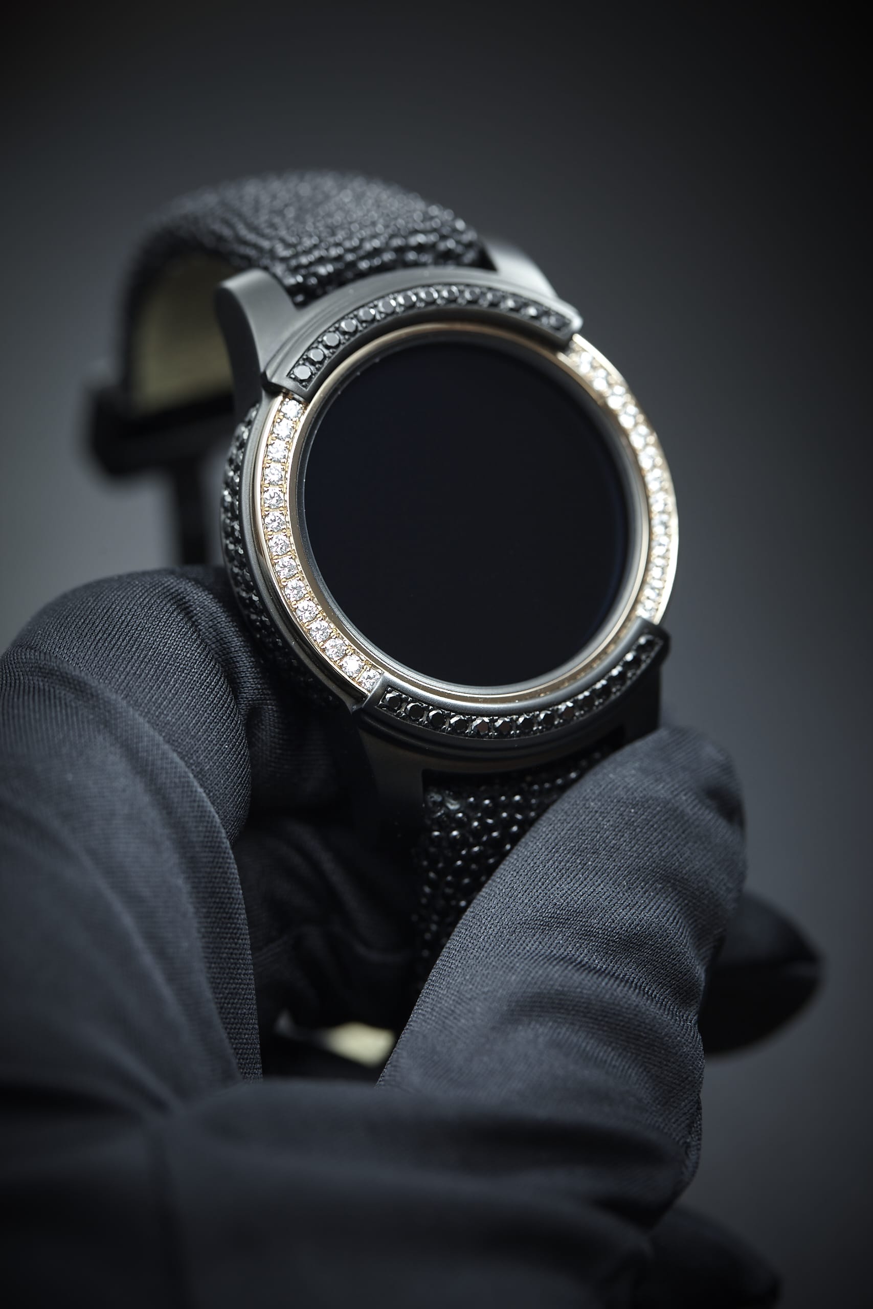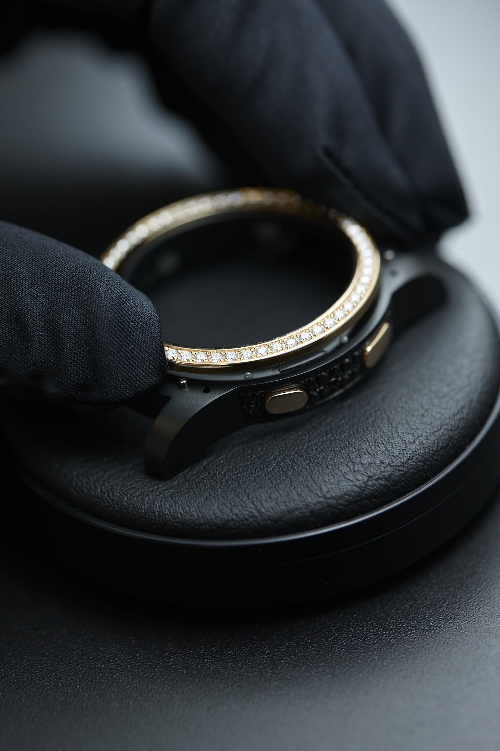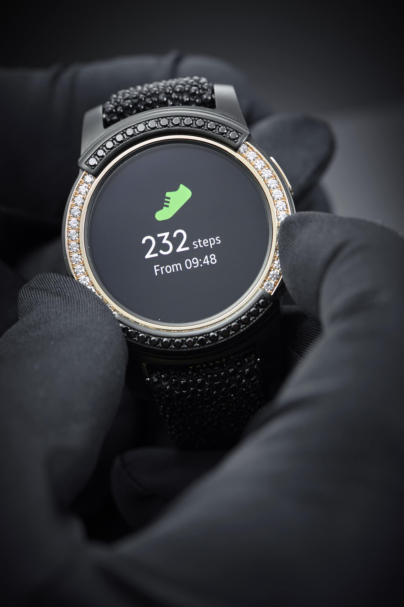 Die Samsung Gear S2 by de Grisogono wird es nur 100x weltweit geben. Die Uhr ist mit über 100 schwarzen und weißen Diamanten besetzt, die Lünette besteht aus Rose Gold.