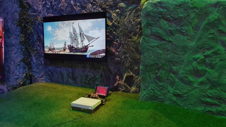 … wie jedes Jahr alle Produktneuheiten und Gaming-Flagschiffe der Südkoreaner zum Anfassen und Ausprobieren. Mit einer Standgröße von 500 m² wurde auch die Show-Stage anteilig deutlich ausgebaut. Fans können sich auf ein vielseitiges Programm mit Turnieren, einem Cosplay-Cup, Castings sowie prominente Influencer freuen und mit etwas Können bei der SSD-Challenge eine SSD gewinnen. Neu ist im Vergleich zu den Vorjahren auch ein großer Raum für Fernseher, auf denen Gear 5 angespielt werden kann. Das zeigt, dass Samsung sein QLED-TV-Portfolio bewusst für Gamer in Szene setzen möchte und auch technisch kann.