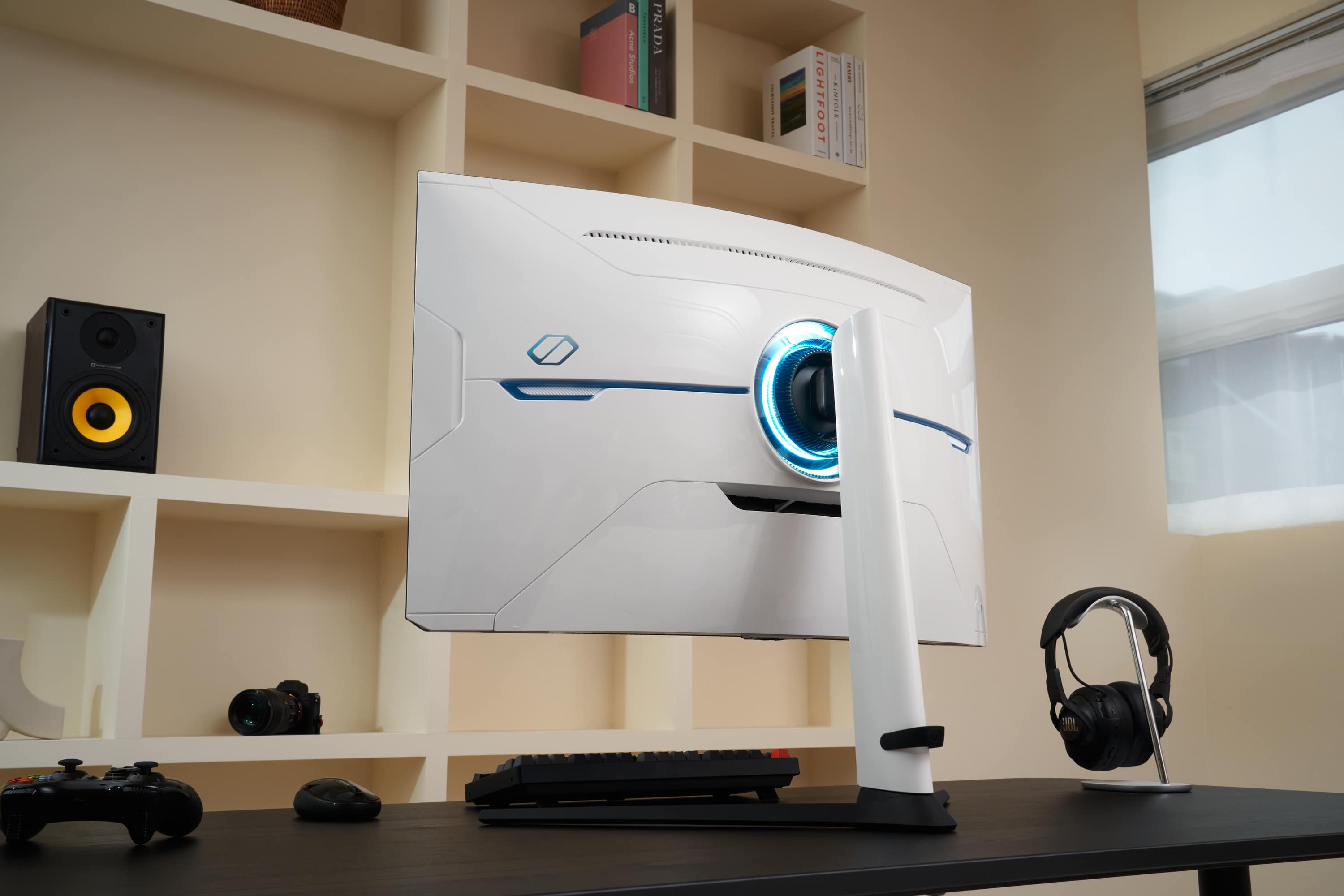 Darüber hinaus bietet der Curved-Monitor (1.000R Krümmung) einen höhenverstellbaren Standfuß (HAS), der auch im Pivot genutzt werden kann, sowie Schwenk- und Neigefunktionen für ergonomische Effizienz und eine VESA-Halterung.