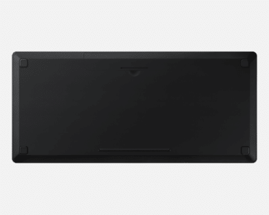 Allerdings muss man einen Punkt der Tastatur als Wermutstropfen hinnehmen – die Stromversorgung. Hier setzt Samsung nämlich (fast schon anachronistisch) auf zwei AAA-Batterien. Ein integrierter Akku wäre da wohl die modernere und praktischere Lösung gewesen. Schließlich ließe sich die Tastatur dann stets mittels Kabelverbindung zum Galaxy-Gerät aufladen. Doch auch, wenn die Galaxy-Geräte bei der kleinen Tastatur im Fokus stehen, lässt sie sich auch mit anderen nutzen. Denn Samsung setzt dank Bluetooth 5.0 auf eine hohe Kompatibilität. Die Betonung liegt jedoch darauf, dass hauseigene Smartphones, Tablets und Notebooks von einer weit unkomplizierteren Kopplung profitieren sollen.