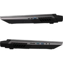 Anschlussseitig hat das DTR 17 zwei Thunderbolt-4-Ports mit DisplayPort-Funktionalität, welche gleichzeitig als HDMI-2.1-Port fungieren. Dazu kommen zwei G-SYNC-kompatible Mini DisplayPorts 1.4, USB-C 3.2 Gen2, zwei USB-A 3.2 Gen2 Ports, ein UHS-III-SD-Kartenleser im Vollformat und separate Audioanschlüsse für Mikrofon und Kopfhörer, welche Headset-kompatibel sind. Weiterhin können bis zu drei externe Bildschirme mit dem Laptop verwendet werden. Gefunkt wird hier via Wi-Fi 6 oder mit dem 2,5-Gigabit-Ethernet-Port.