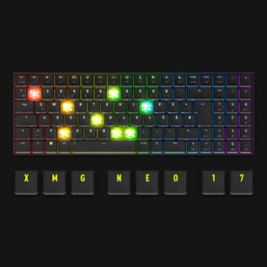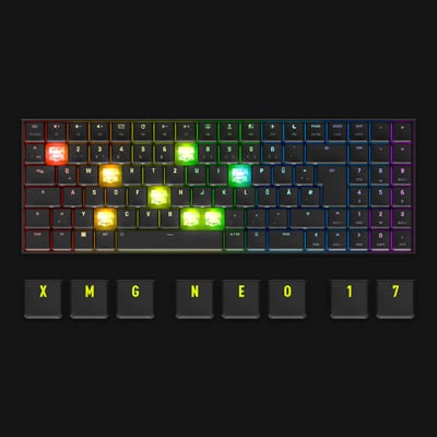 Bereits in den ersten XMG-Modellen wurde die optomechanische Tastatur eingesetzt, so auch in den aktuellen Modellen, damit kommen Nutzer in den Genuss der präzisen Druckpunkte des Eingabegeräts. Die taktilen Silent Switches haben einen Hub von zwei Millimetern sowie einen Schaltweg von einem Millimeter. Um auszulösen wird eine Betätigungskraft von 60 g (cN) benötigt. Die Tastatur unterstützt N-Key-Rollover und Anti-Ghosting und bietet eine RGB-Einzeltastenbeleuchtung.
