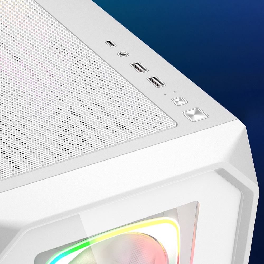 Das Modell AK5M RGB bietet mit einer Mesh-Front eine Variante für Nutzer, die Wert auf zusätzliche Luftzirkulation legen, ohne auf die beeindruckende Optik verzichten zu müssen.