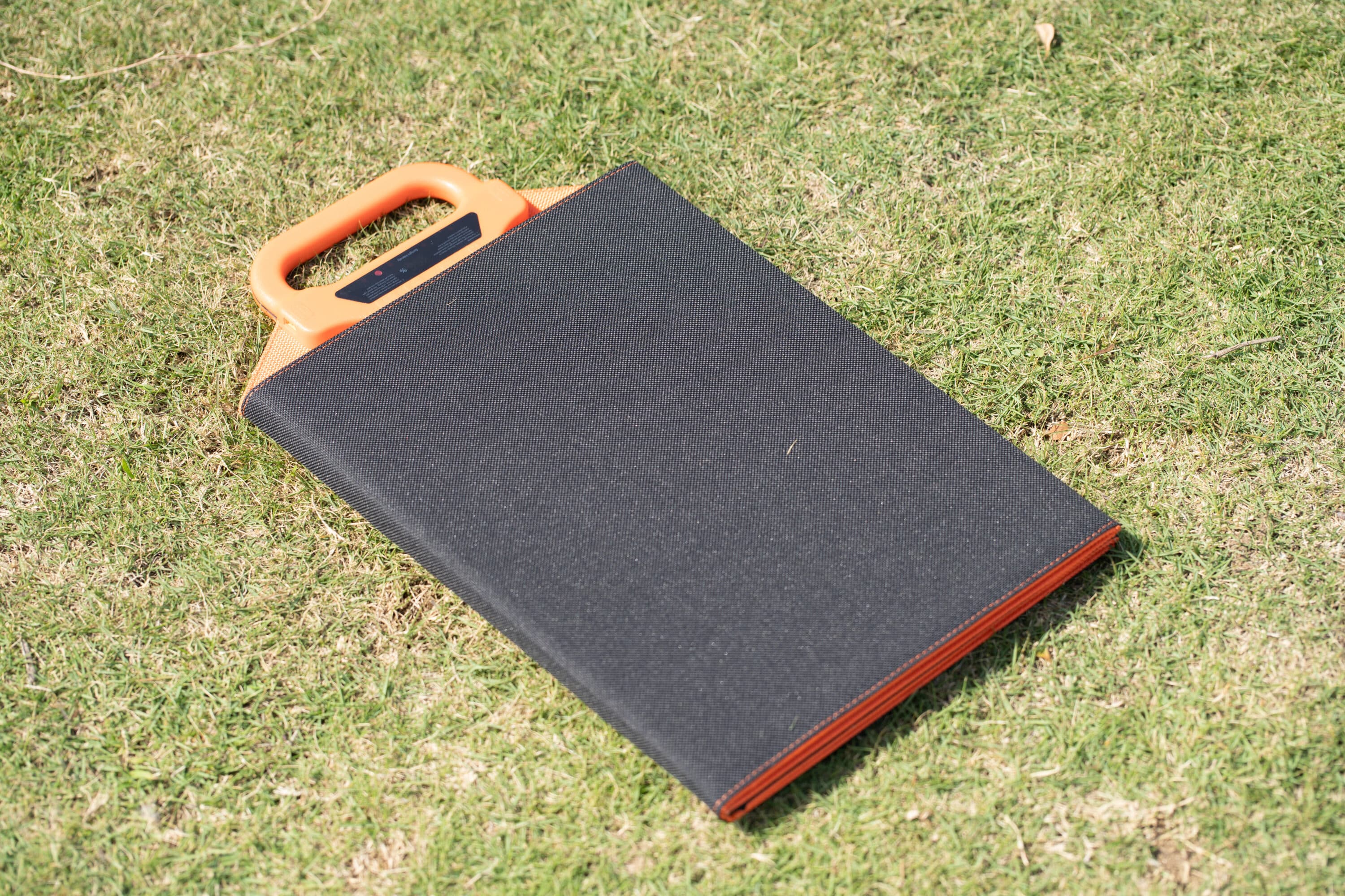 Das 1,8 kg leichte Solar-Panel kann dabei ganz einfach zusammengefaltet werden und kommt so auf eine handliche Größe von 45,5 cm x 26 cm x 2 cm. Ausgeklappt fängt es die Sonnenenergie auf einer Größe von 106,5 x 45,5 x 0,5 cm ein und verfügt sogar über einen anpassbaren Kickstand, um es ideal zur Sonne ausrichten zu können.