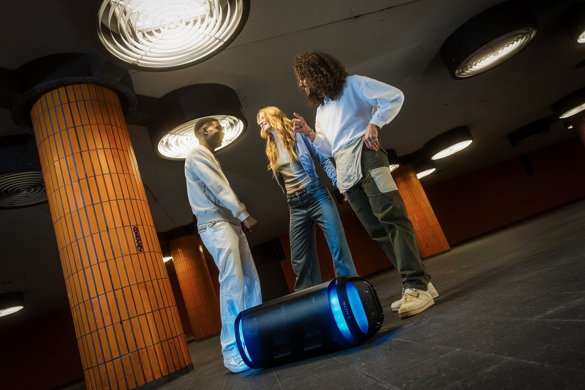 Trotz der Größe soll der Bluetooth-Lautsprecher einfach zu transportierten sein, verspricht der Hersteller. Dafür sorgen integrierte Räder und ein praktischer Handgriff. Das indirekte Umgebungslicht erleuchtet zudem den Raum und lässt sich individuell anpassen. Selbst eine Synchronisierung im Takt der Musik ist möglich.