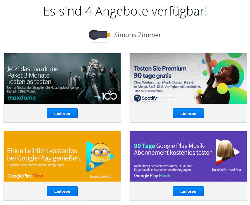 Um zu den Angeboten zu gelangen, müsst ihr wieder mal einfach auf die Angebote-Seite des Chromecasts. Dieser muss an und mit dem Netzwerk verbunden sein um auf die Angebote zugreifen zu können.