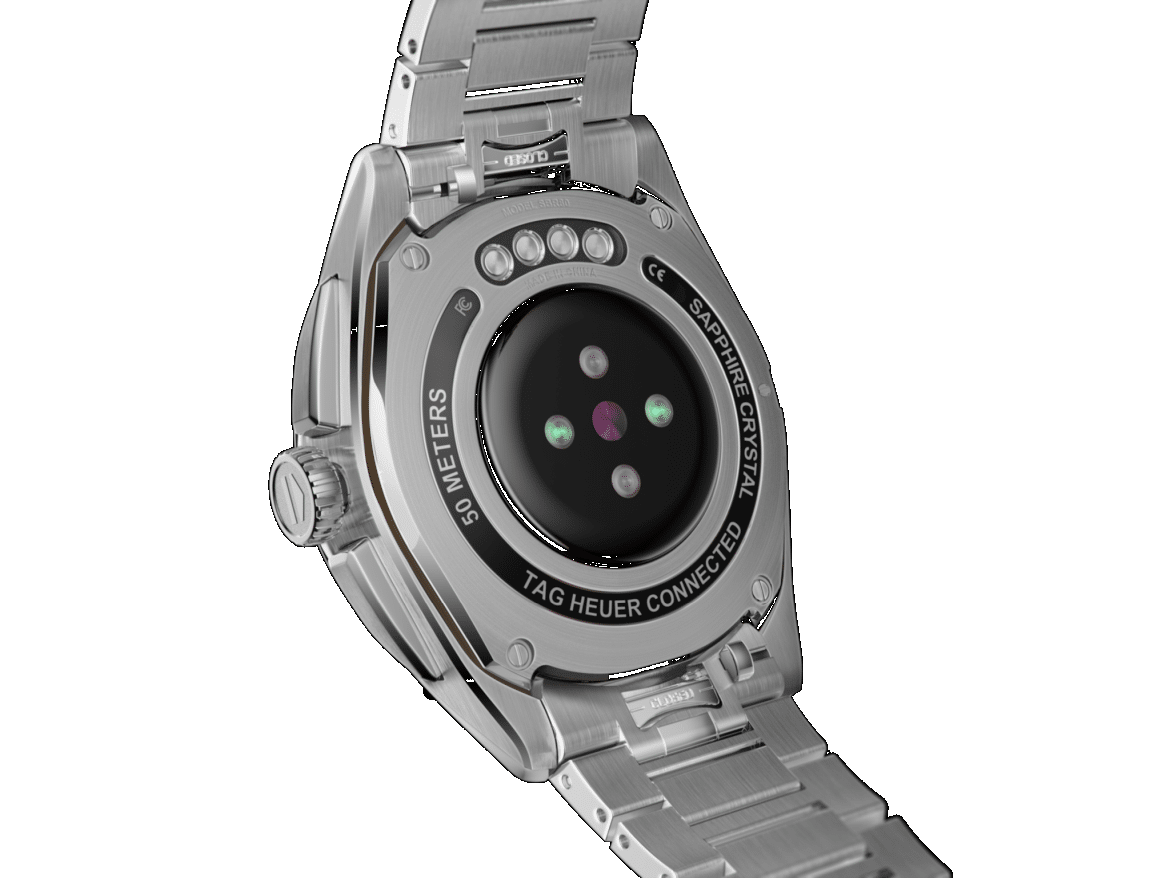 Geerbte hat die TAG Heuer Connected Calibre E4 dabei die Wahl hochwertiger Materialien und eine exzellente Verarbeitung. Abhängig vom gewählten Modell wird das Gehäuse aus Edelstahl oder Titan gefertigt. Die Lünette besteht aus Keramik und das Uhrenglas aus hochwertigem, kratzfesten Saphirglas. Bei den Armbändern stehen Metall, Leder oder Kautschuk zur Auswahl.