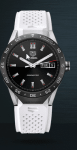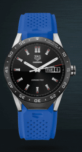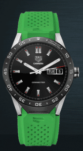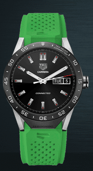 Augenscheinlich bezahlt man hauptsächlich das Titan-Gehäuse, das Display aus Saphir und den Namen „Tag Heuer“, sowie das typische Design der Manufaktur. Das Band besteht hauptsächlich aus Gummi und ist in verschiedenen Farben erhältlich. Auf der Rückseite befinden sich die Pins um die Smartwatch. Zudem ist die Connected mit IP67 zertifiziert, hat einen Durchmesser von 46 mm und eine Dicke von 12,8 mm.