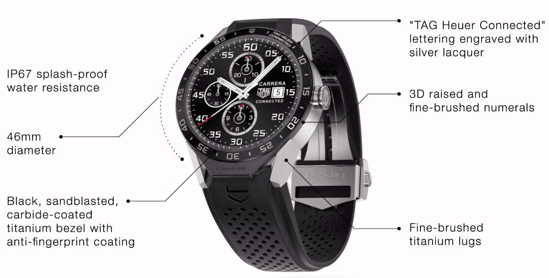 Tag Heuer hat auch bedacht, dass solche Smartwaches meist nur ein bis zwei Jahre brauchbar sind, während normale Uhren eigentlich ihr Leben lang benutzt werden können. Beim Kauf der Tag Heuer Connected bekommt ihr einen „Schutz vor Veralterung“, bei der ihr gegen Zahlung von weiteren $1.500 eine mechanische Tag Heuer Carrera bekommt. Diese hat immerhin das selbe Design.