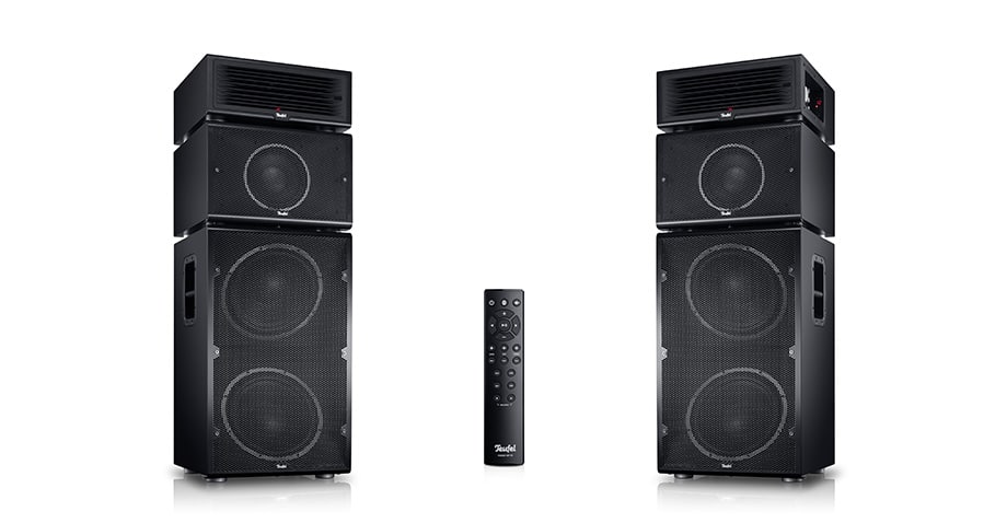 Wie bei derartigen Soundsystemen üblich, verfügt auch das jetzt vorgestellte Systeme über außerordentlich viele Möglichkeiten der Einflussnahme auf den Sound. So lassen sich beispielsweise Stereo- und Mono-Sets optisch erstellen oder Bluetoothverbindungen mit AptX zur hochqualitativen kabellosen Übertragung herstellen. Darüber hinaus lassen sich alle drei Pegel einzeln einstellen, sodass ohne größere Probleme ein ausgewogener Klang erreicht werden kann. Ergänzt werden die genannten Funktionen durch Auto-On-Off-Funktionalität via Cinch, XLR und Bluetooth sowie durch ein großes Bedienpanel aus Metall, welches mit einem Display, einer USB-Soundkarten-Funktion und einer Fernbedienung ausgestattet ist.