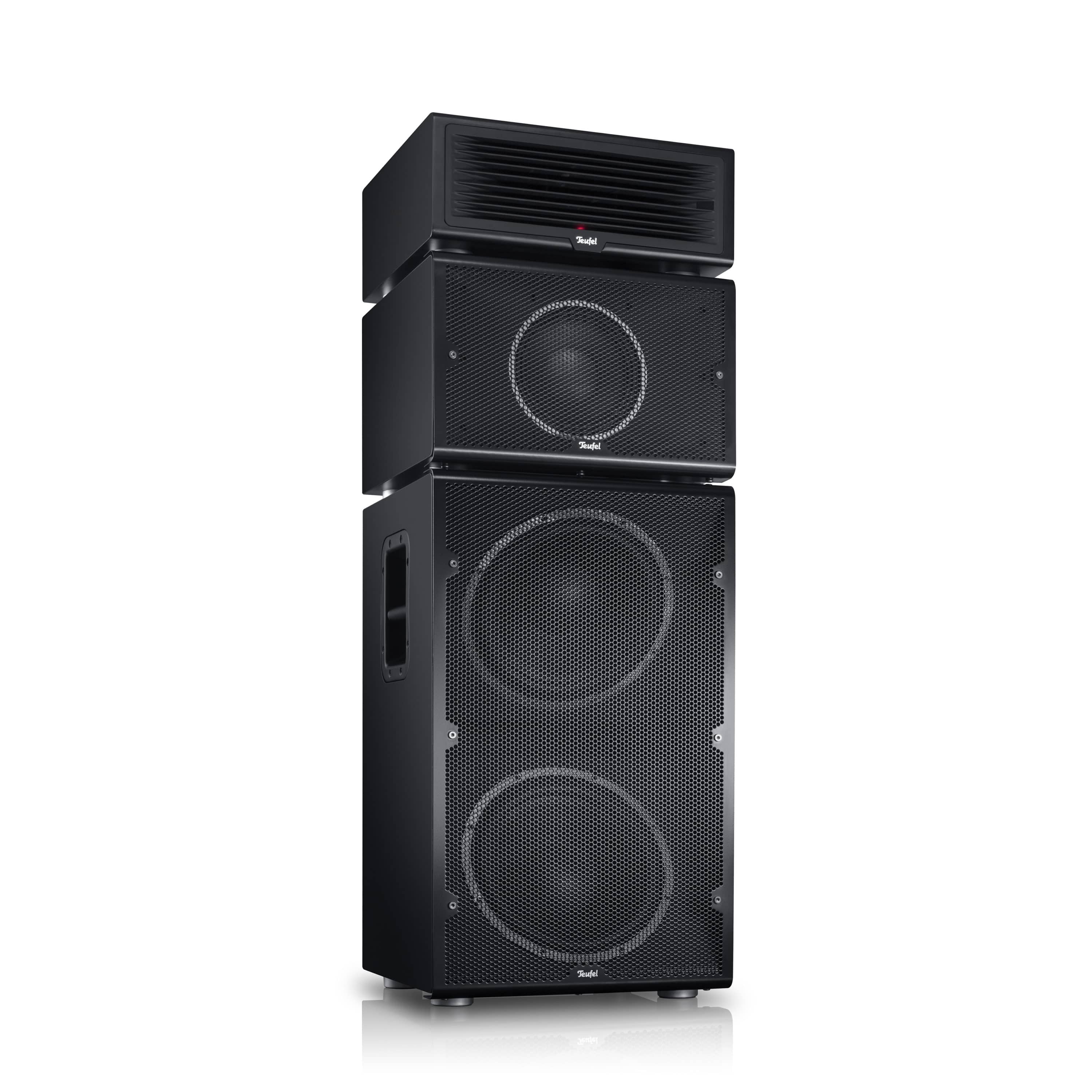Tatsächlich ist das Gerät in jeder Hinsicht aufsehenerregend. So sind bereits die Maße des modularen Systems beeindruckend: Sind alle drei Teile des Soundsystems aufgebaut, kommt es auf knapp 130 cm Bauhöhe. Zusammengesetzt ist es indes aus einer Hochton-, einer Mittelton- und einer Tieftoneinheit. Gestaltet ist das System eindeutig für den Einsatz auf größeren Musikveranstaltungen. Alle drei Teile sind sehr robust aufgebaut, sodass sie problemlos auf Bühnen zum Einsatz kommen können. Ferner ist das größte der drei Module mit Tragegriffen ausgestattet, was den Transport des Geräts erleichtert.