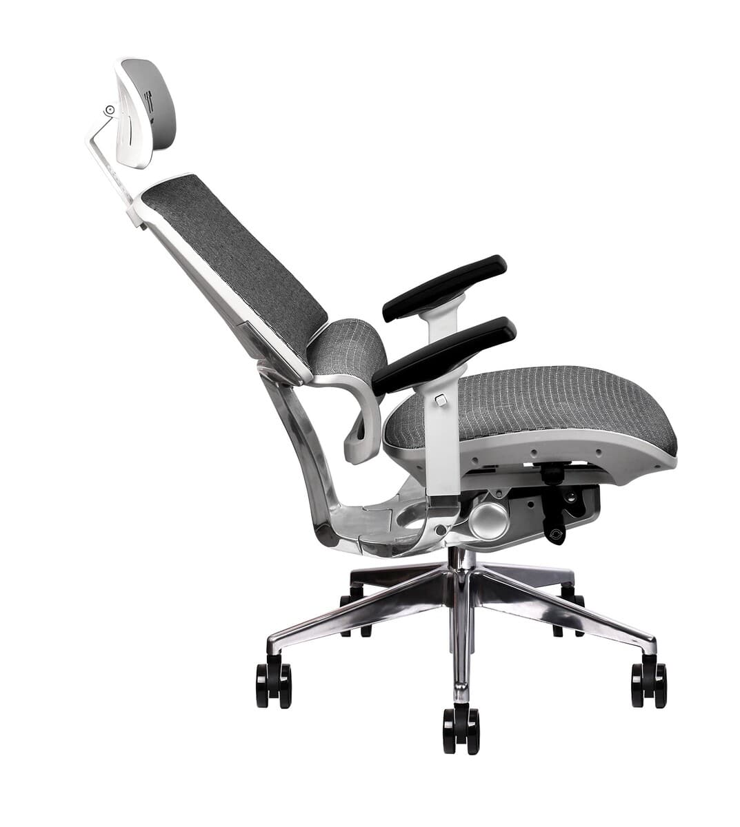Der CyberChair zeichnet sich jedoch – wie auch sein Vorgänger in Schwarz – durch zahlreiche individuelle Einstellungsoptionen aus. So können unter anderem die Kopfstütze, die Armlehnen (in 4D), die Sitzhöhe (50 bis 60 cm) und -tiefe (um 3 cm) genau an die Ansprüche des Nutzers angepasst werden. Besonders praktisch: die Rückenlehne kann um bis zu 117° verstellt werden. Wer es beispielsweise liebt, sich zwischendurch ein wenig zurückzulehnen, dürfte mit diesem Modell auf seine Kosten kommen.
