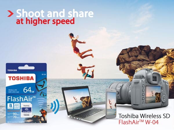 Die Toshiba FlashAir W-04 ist eine Speicherkarte, die an allen Ecken und Enden zu überzeugen weiß. Es handelt sich hierbei um eine Speicherkarte mit integrierter Wi-Fi-Funktion, welche Toshiba im Rahmen der diesjährigen CeBIT vorgestellt hat. Es handelt sich um die vierte Generation der FlashAir. Die Speicherkarte erscheint mit 16 GB, 32 GB und 64 GB Speicherkapazität.